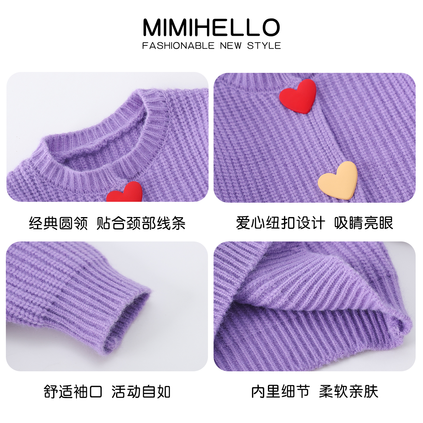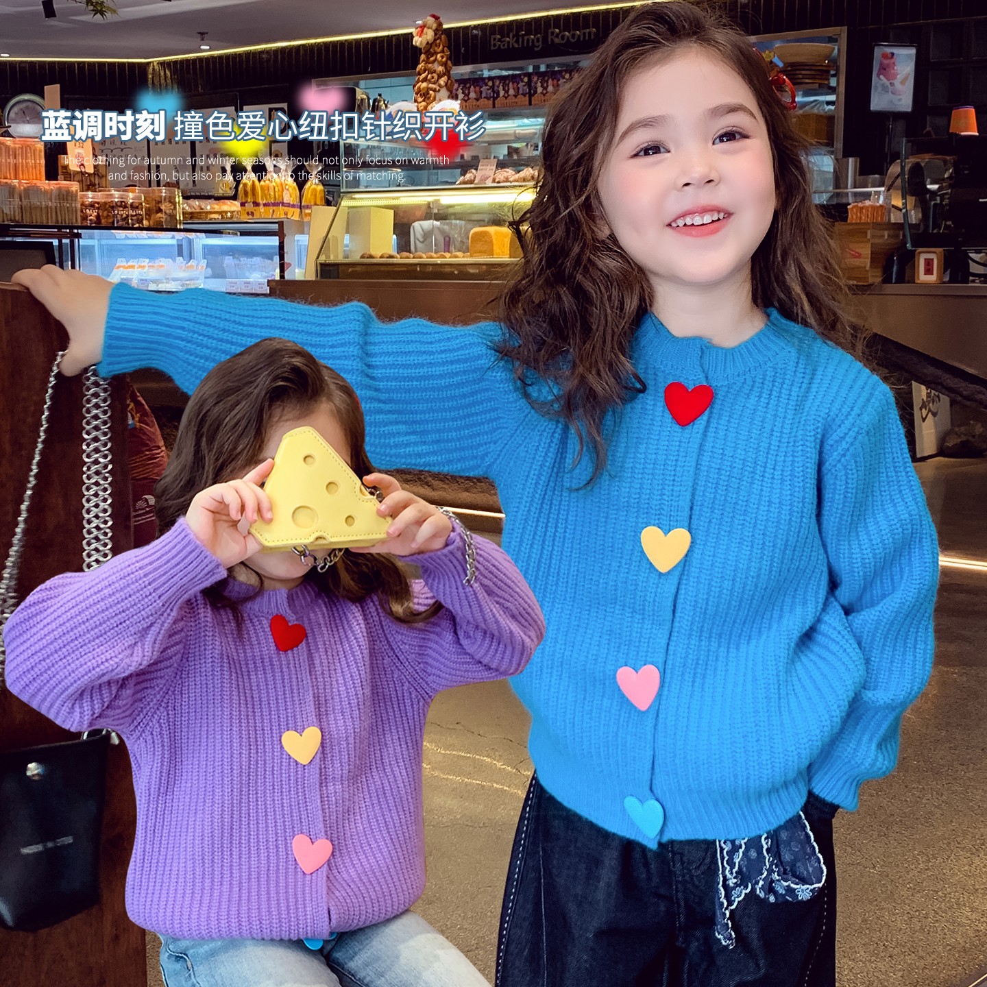 女童毛衣开衫秋装2025新款儿童韩版爱心纯色外套小女孩长袖针织衫
