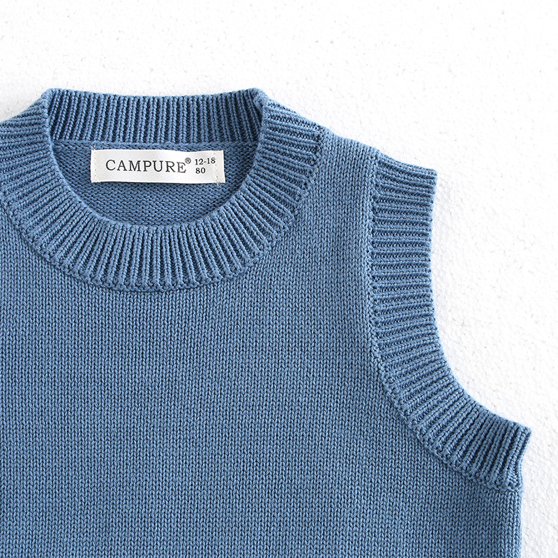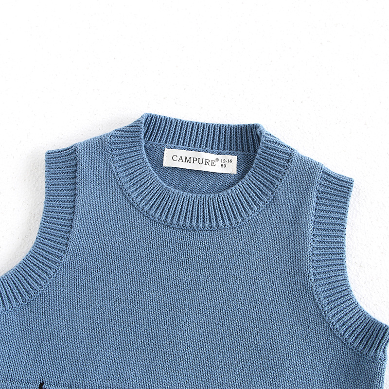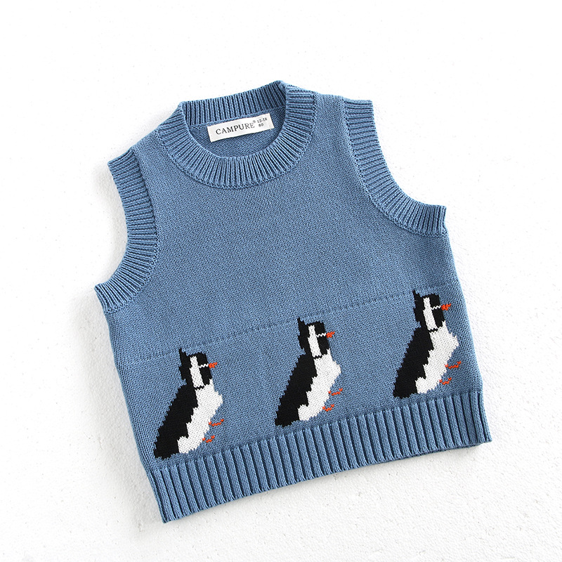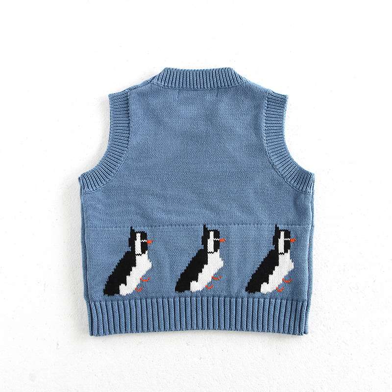 韩版宝宝企鹅针织马甲春季新款男女童卡通提花百搭毛衣背心开衫潮