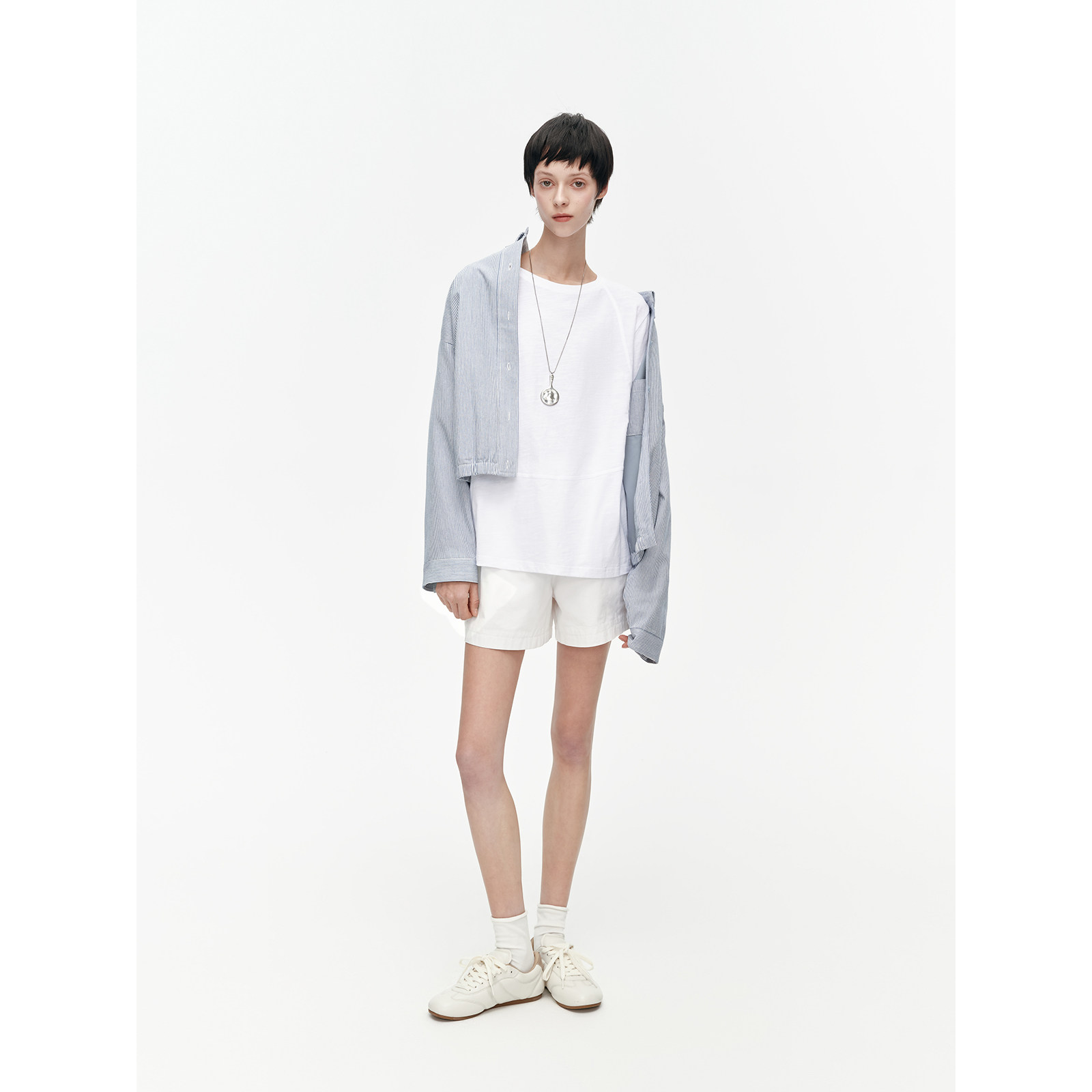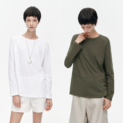 华吉言【森呼吸】100棉亲肤透气针织竹节肌理圆领长袖打底T恤上衣