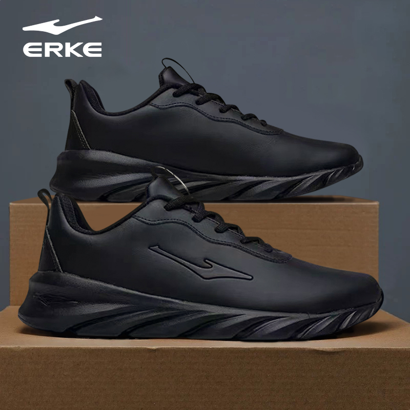 鸿星尔克男鞋轻便跑步鞋皮面防水休闲鞋子男士秋季新款运动鞋男款