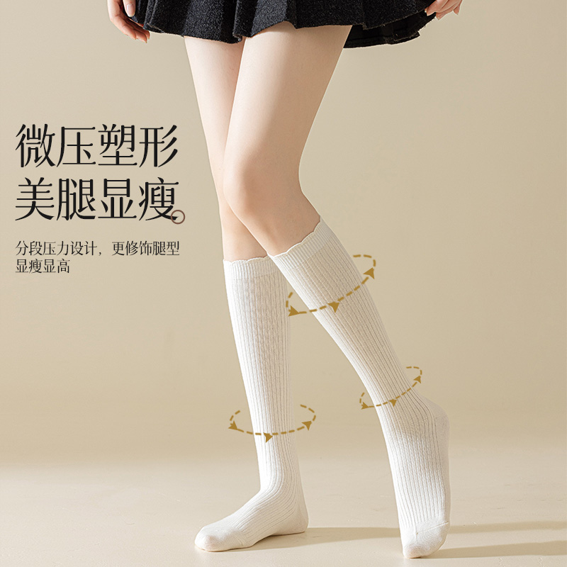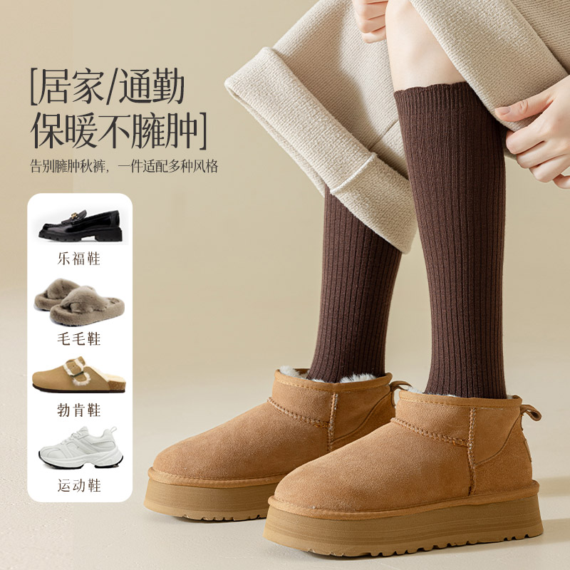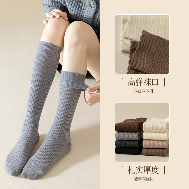 小腿袜仿羊绒女秋冬长筒袜加厚保暖咖色显瘦双针花边美拉德jk长袜