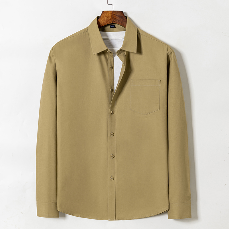 100%棉军绿色男士衬衫长袖中老年爸爸装休闲衬衣父亲节上衣打底衫