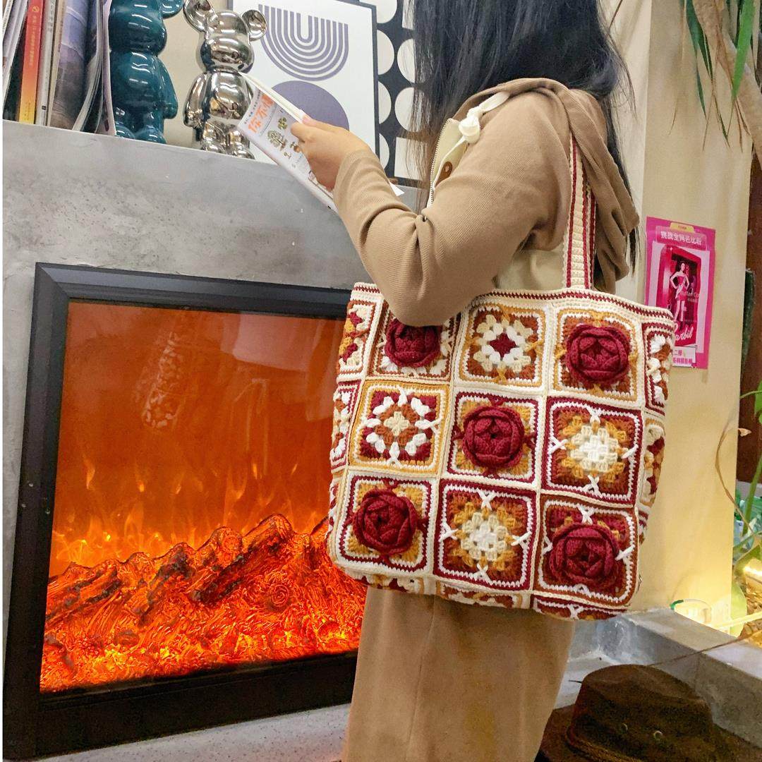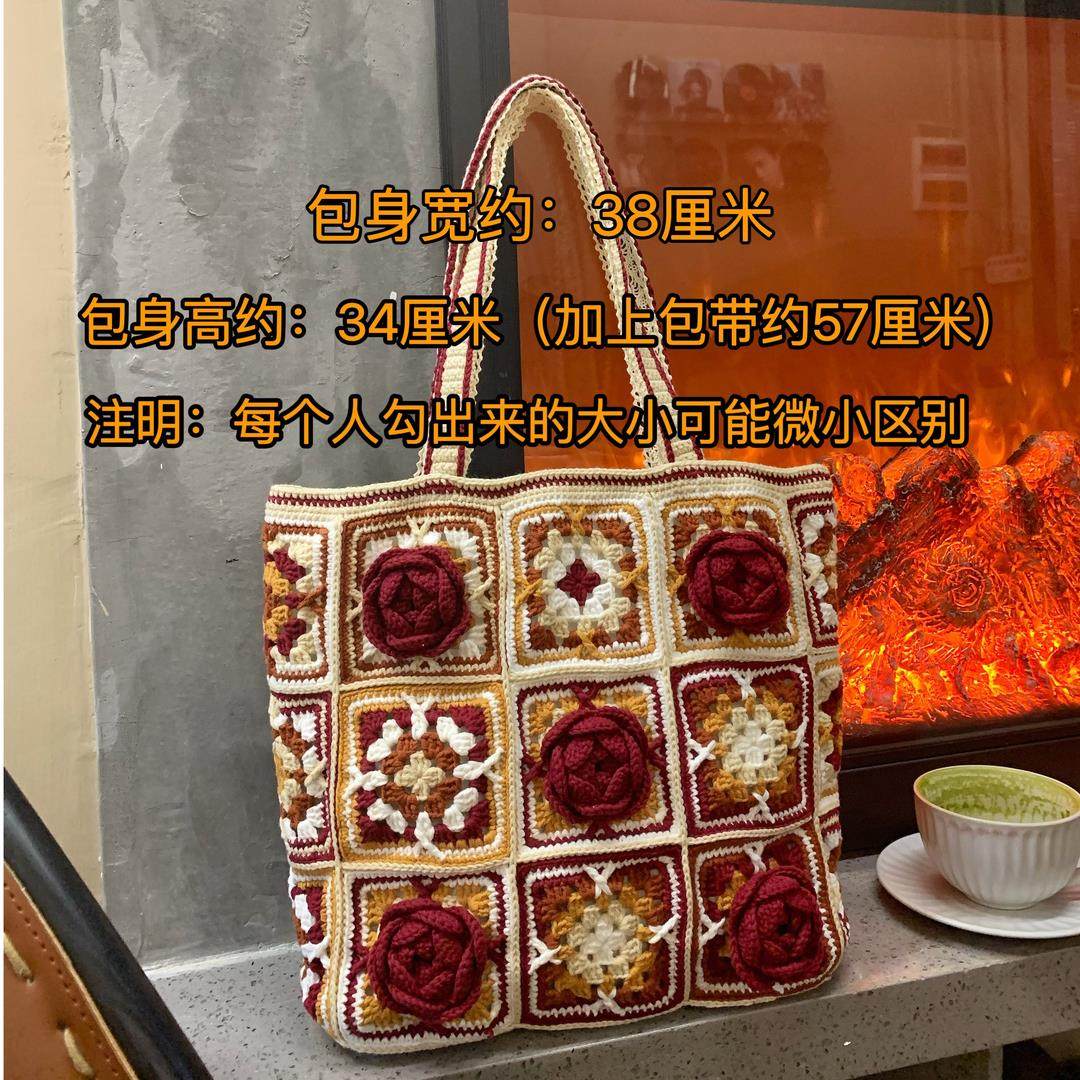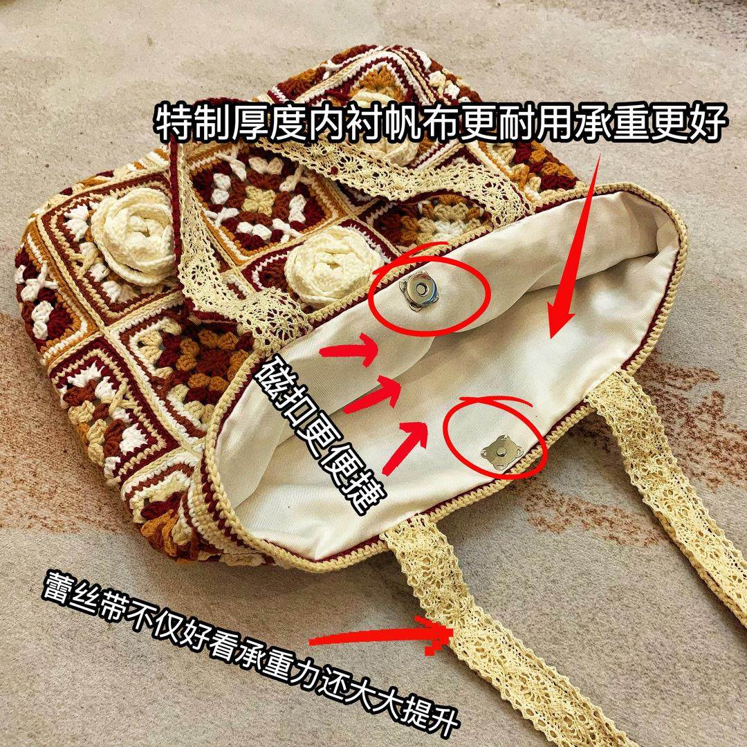 小师妹手作美拉德双色山茶花祖母格单肩包DIY手工材料包编织大容
