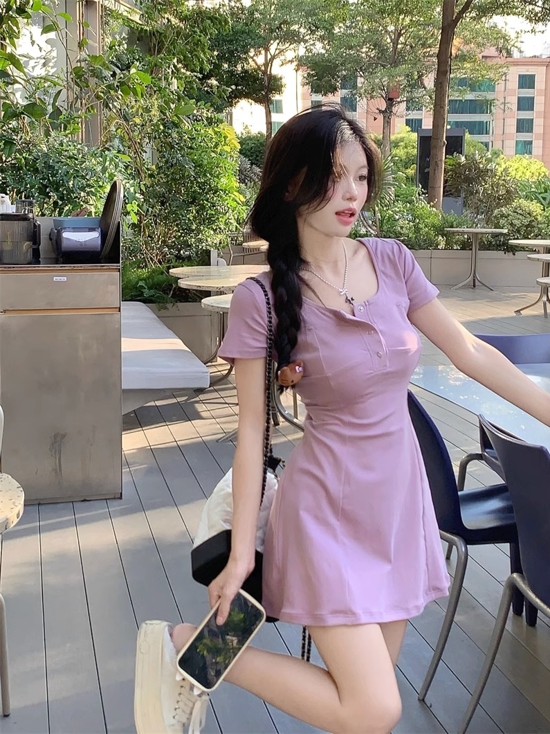 法式赫本风显瘦黑色方领连衣裙女2024新款夏季高级感修身小黑短裙