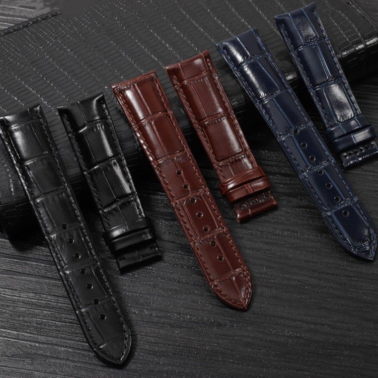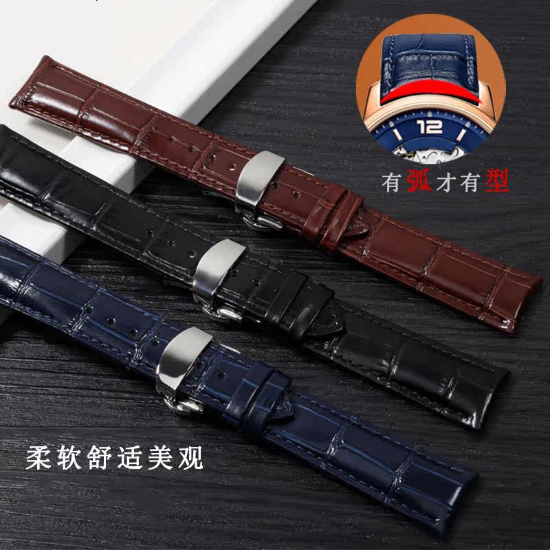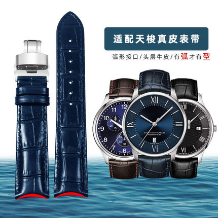 手表带 男真皮适配天梭1853杜鲁尔T099 速驰凹接口蝴蝶扣蓝色表带