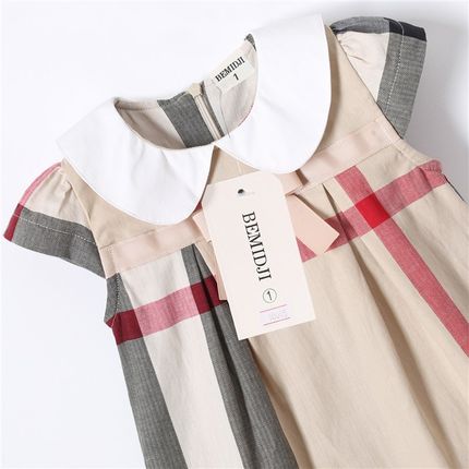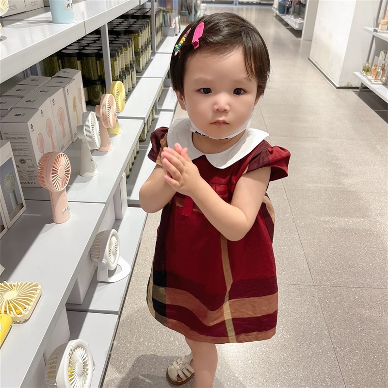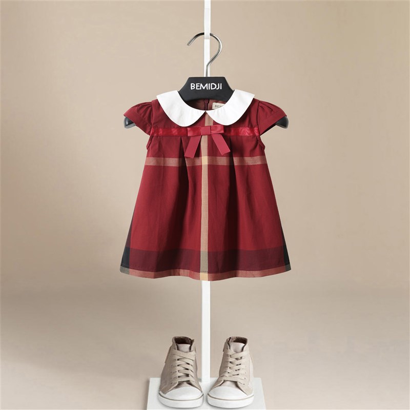 儿童连衣裙夏装女童学院风格子裙纯棉洋气女孩公主裙子伯米吉童装