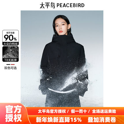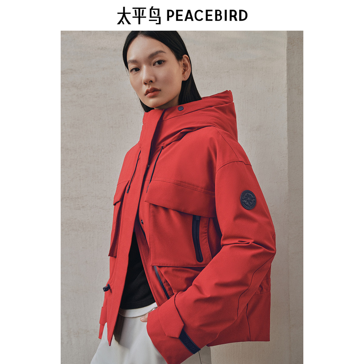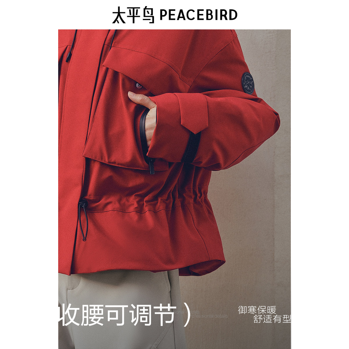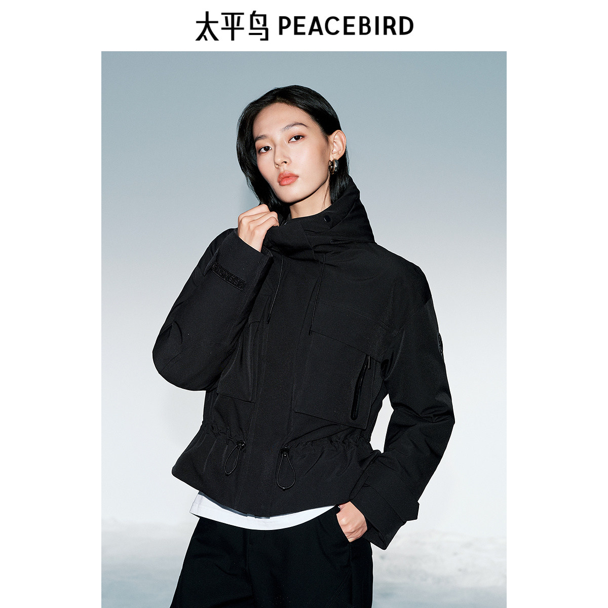 太平鸟短款收腰派克羽绒服女户外防水速干T8面料连帽工装面包外套