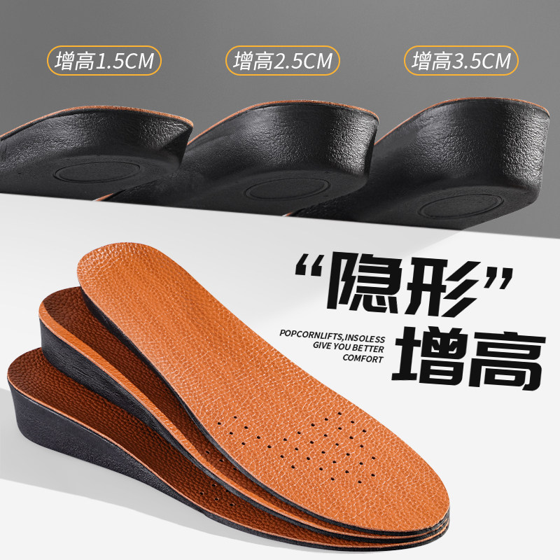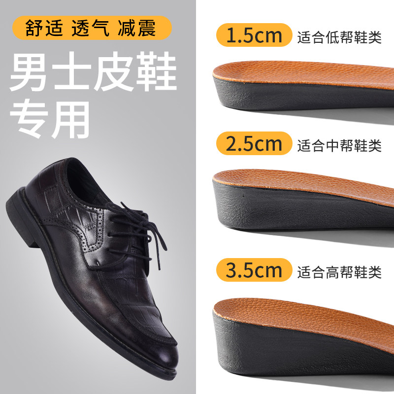 春夏吸汗透气防滑增高鞋垫男防臭隐形内增高女减震牛皮不累脚皮鞋