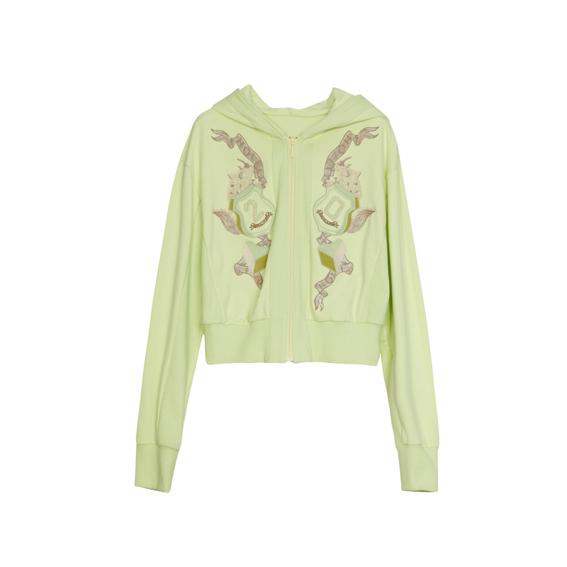 谜底宽松短款外套女春新款复古文艺风绣花连帽长袖241MW0055