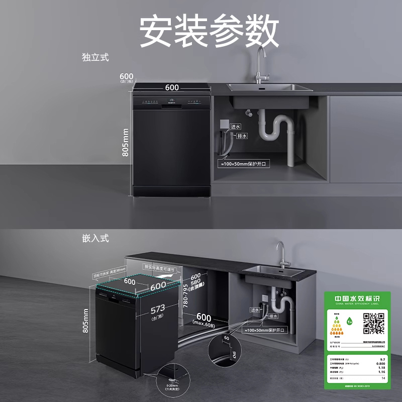 西门子14套独嵌两用洗碗机全能舱Auto自动开门智能烘干SJ23EB00KC
