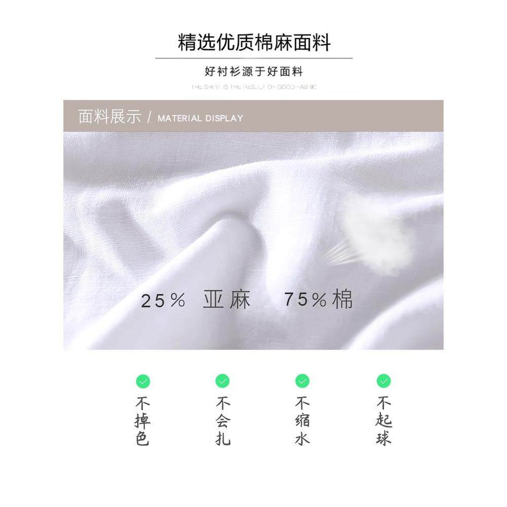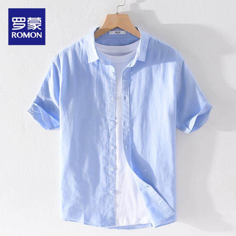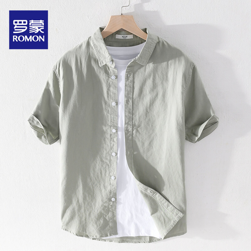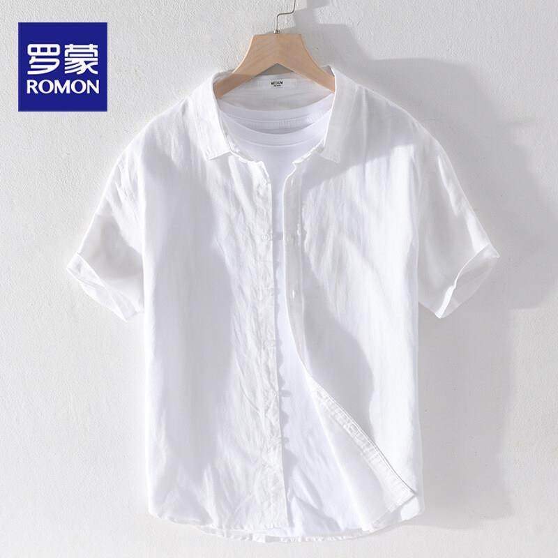 罗蒙棉麻衬衫男短袖夏季薄款2025新款休闲百搭亚麻纯色衬衫透气