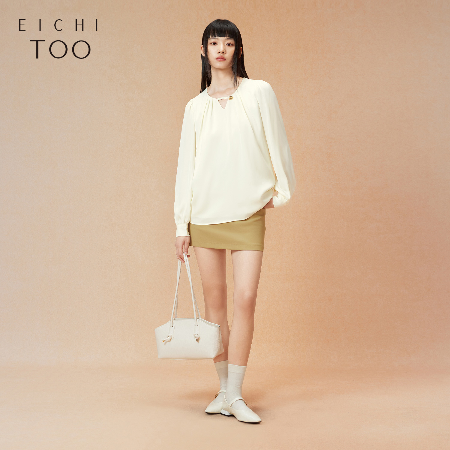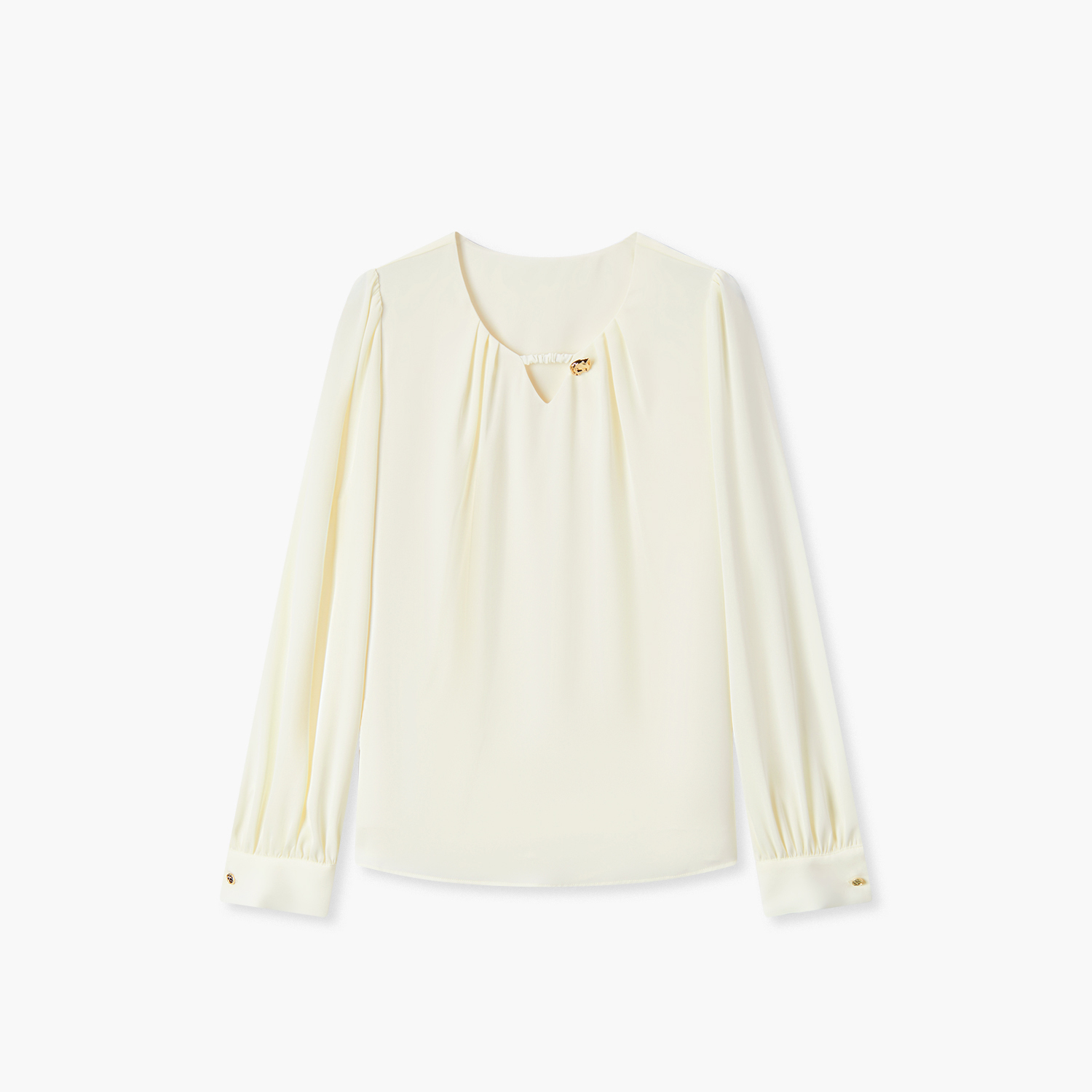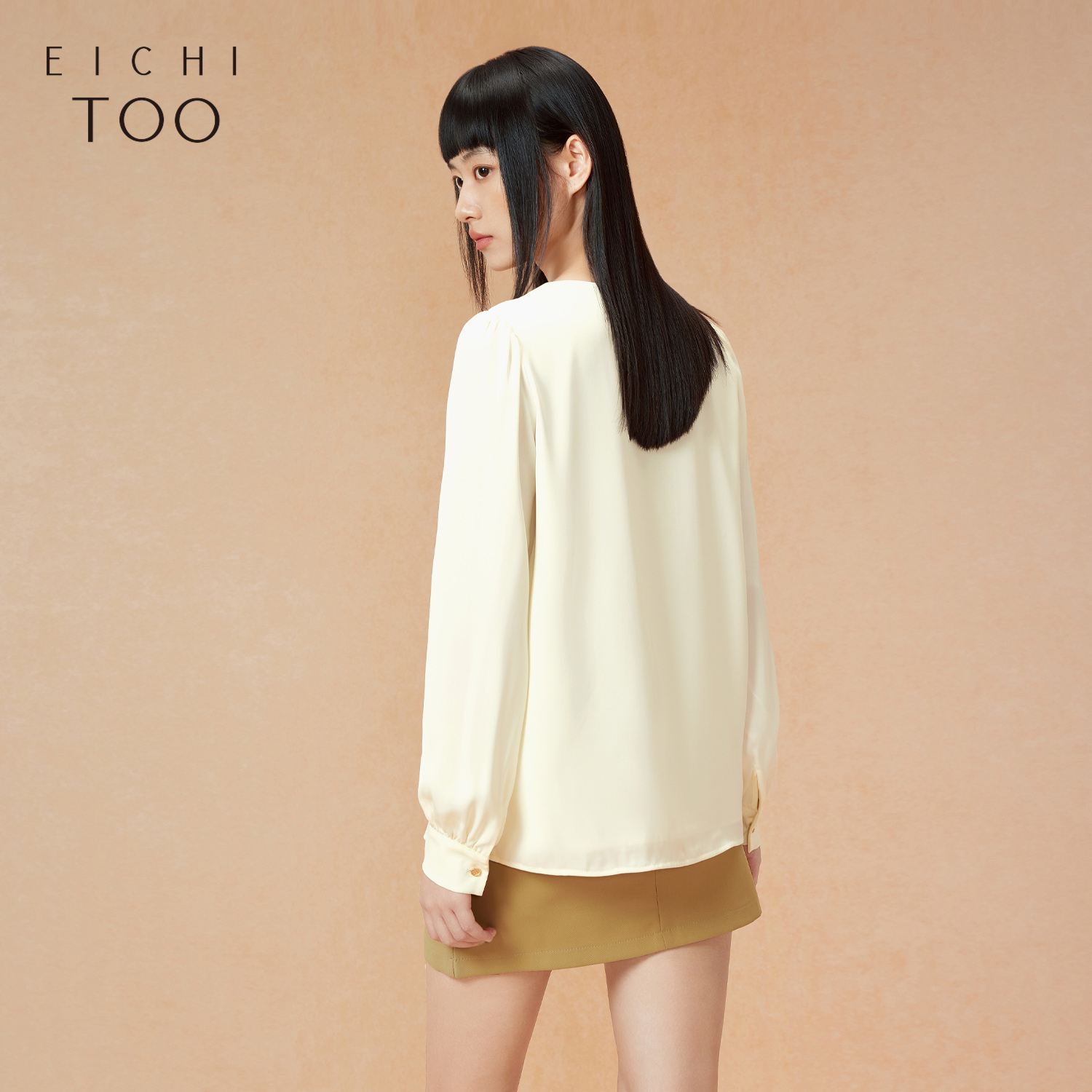 爱居兔法式长袖雪纺女春秋新款气质减龄圆领镂空衬衫上衣