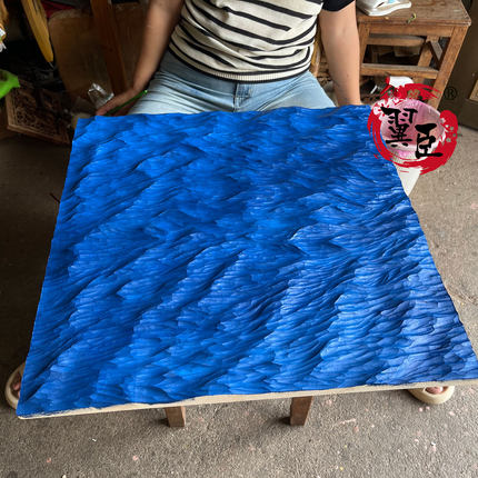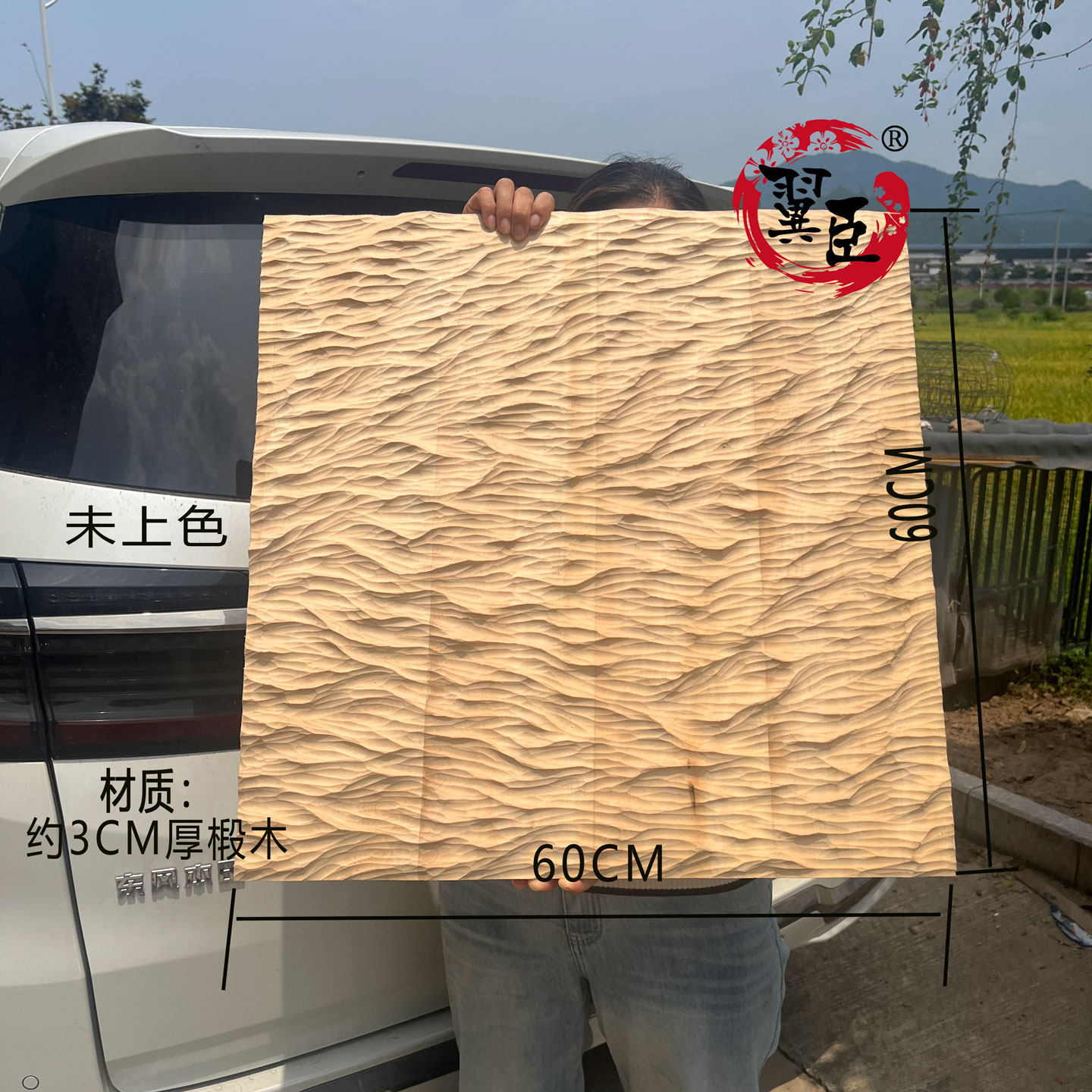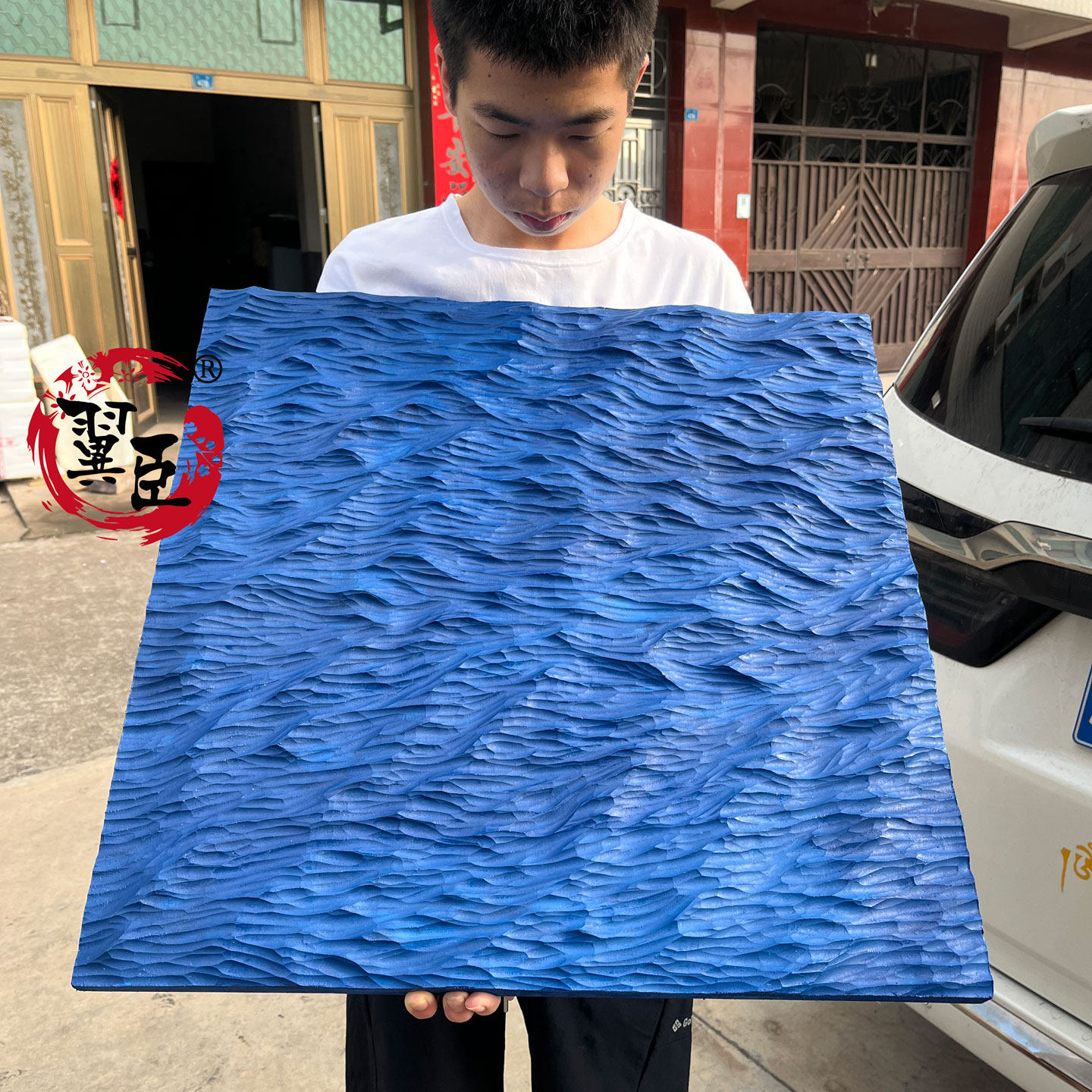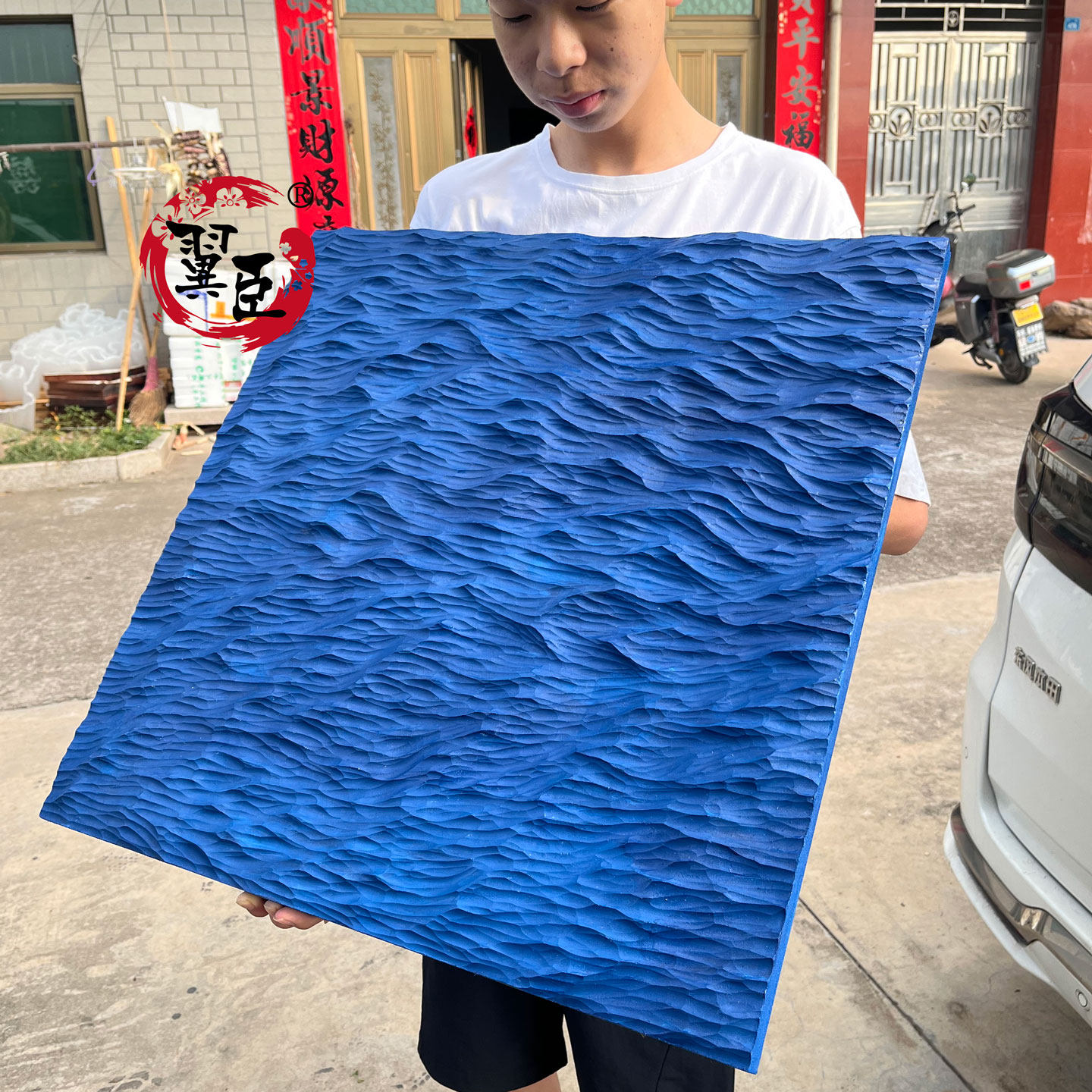 海浪实木雕刻蓝色主题玄关装饰挂画客厅墙壁风景卧室面艺术品