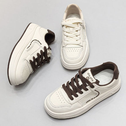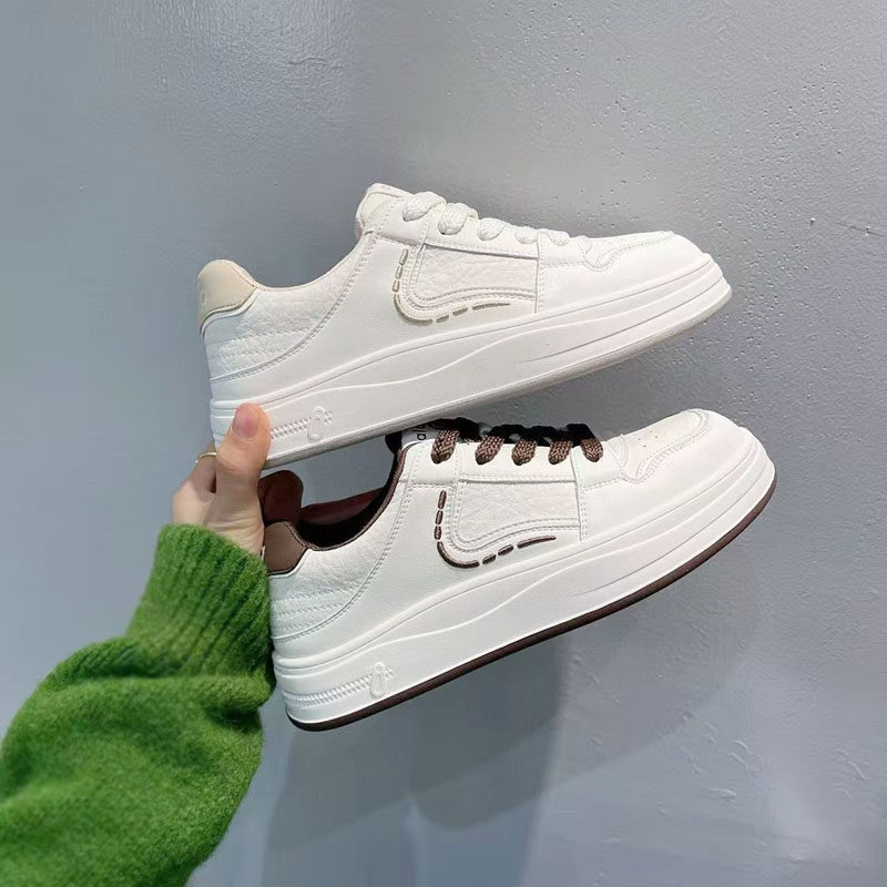 专柜好货真皮厚底轻便特色爆款跑鞋休闲运动鞋女德训鞋绑带小白鞋