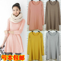 2026春秋季棉女中长款长袖打底裙子修身连衣裙A字韩版内搭洋气裙