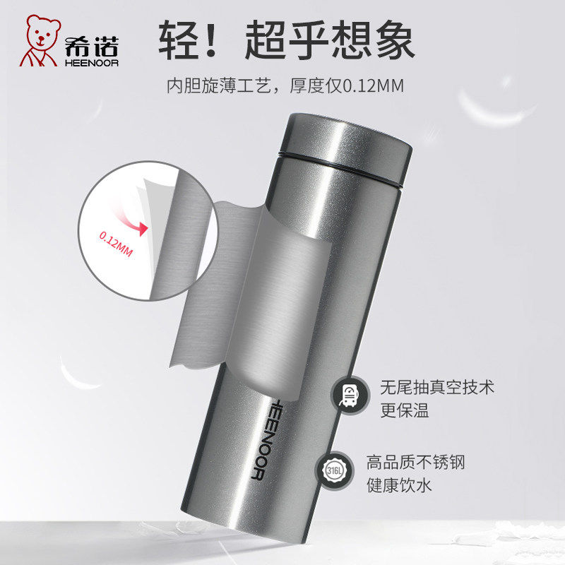 希诺保温杯男316L不锈钢轻量便携水杯车载高档商务办公茶杯XN3089
