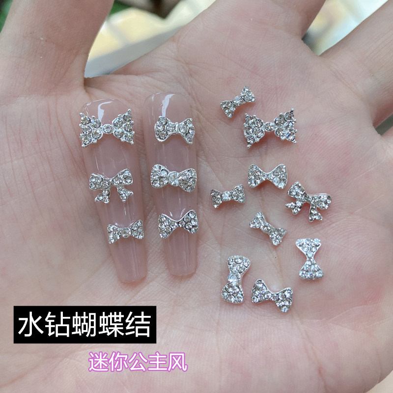 6颗装新款美甲饰品合金蝴蝶结仙气美甲钻饰可爱公主风指甲装饰钻