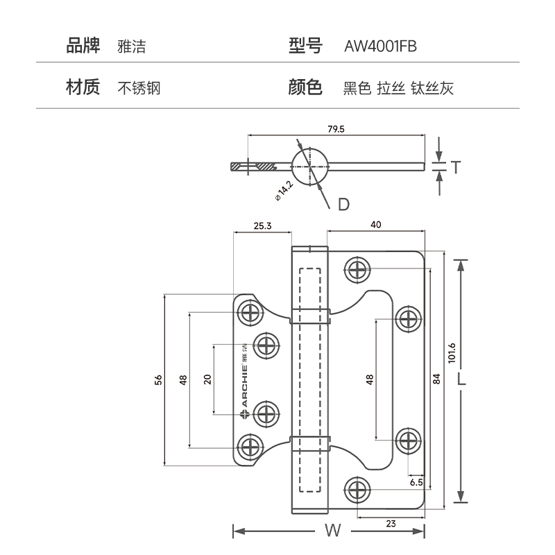 雅洁免开槽木门不锈钢子母合页