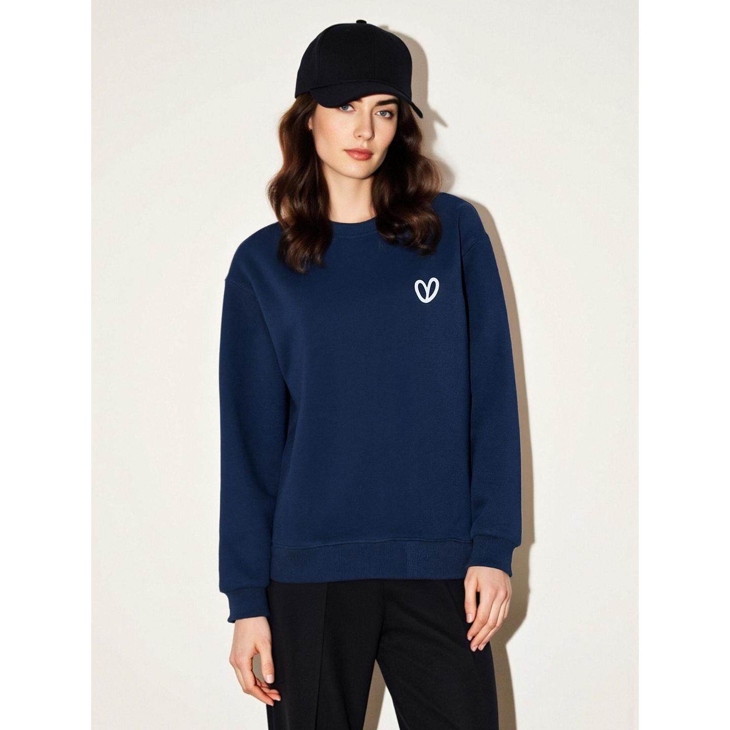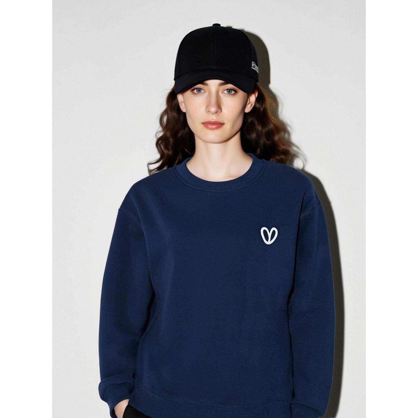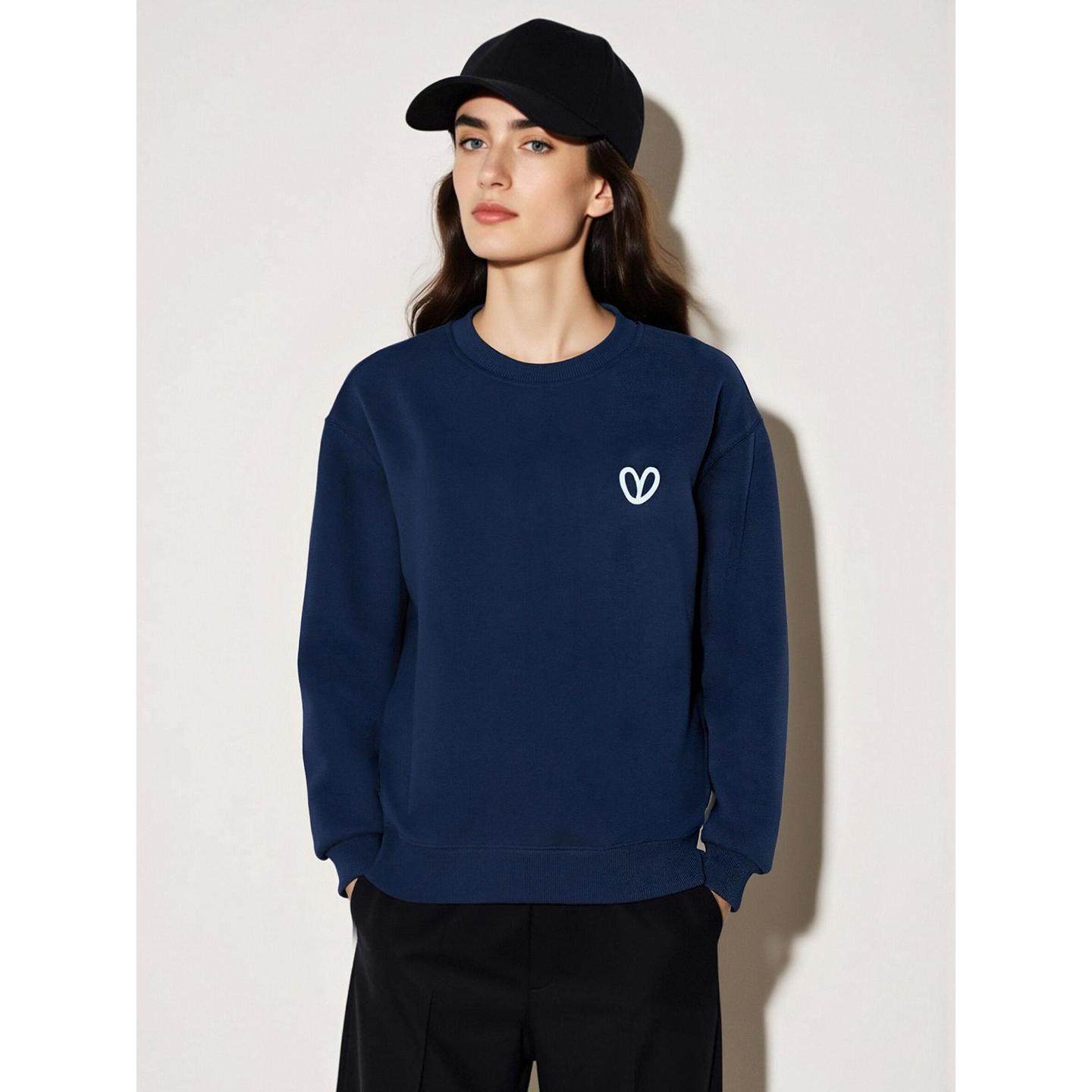 百家好爱心印花圆领加绒卫衣女