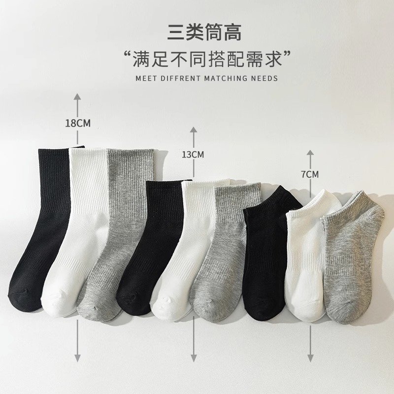 棉袜白色男中筒春秋季纯棉加厚男生运动百搭长袜春秋款纯色中筒袜