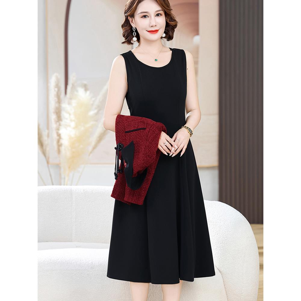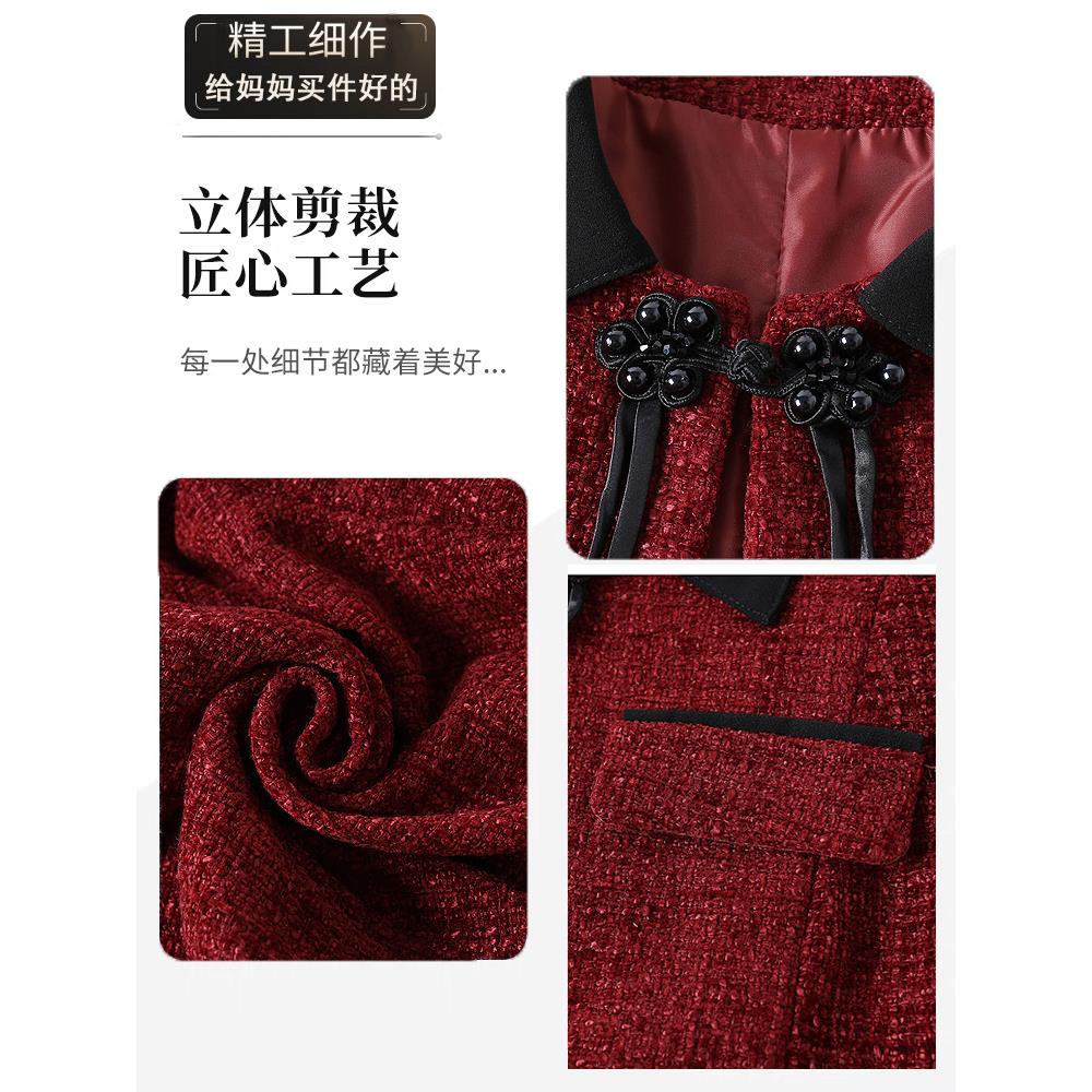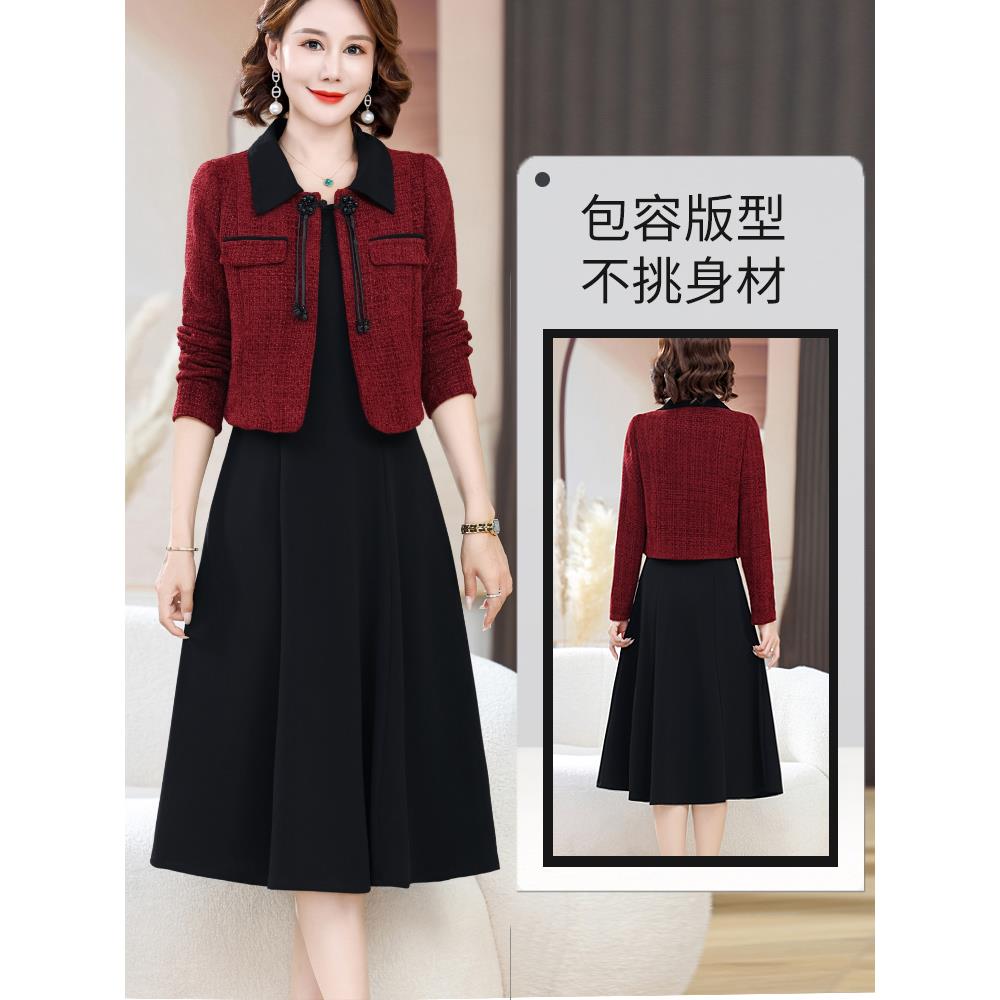 年轻妈妈连衣裙40多岁50中年女士春装酒红洋气小香风两件套装裙子