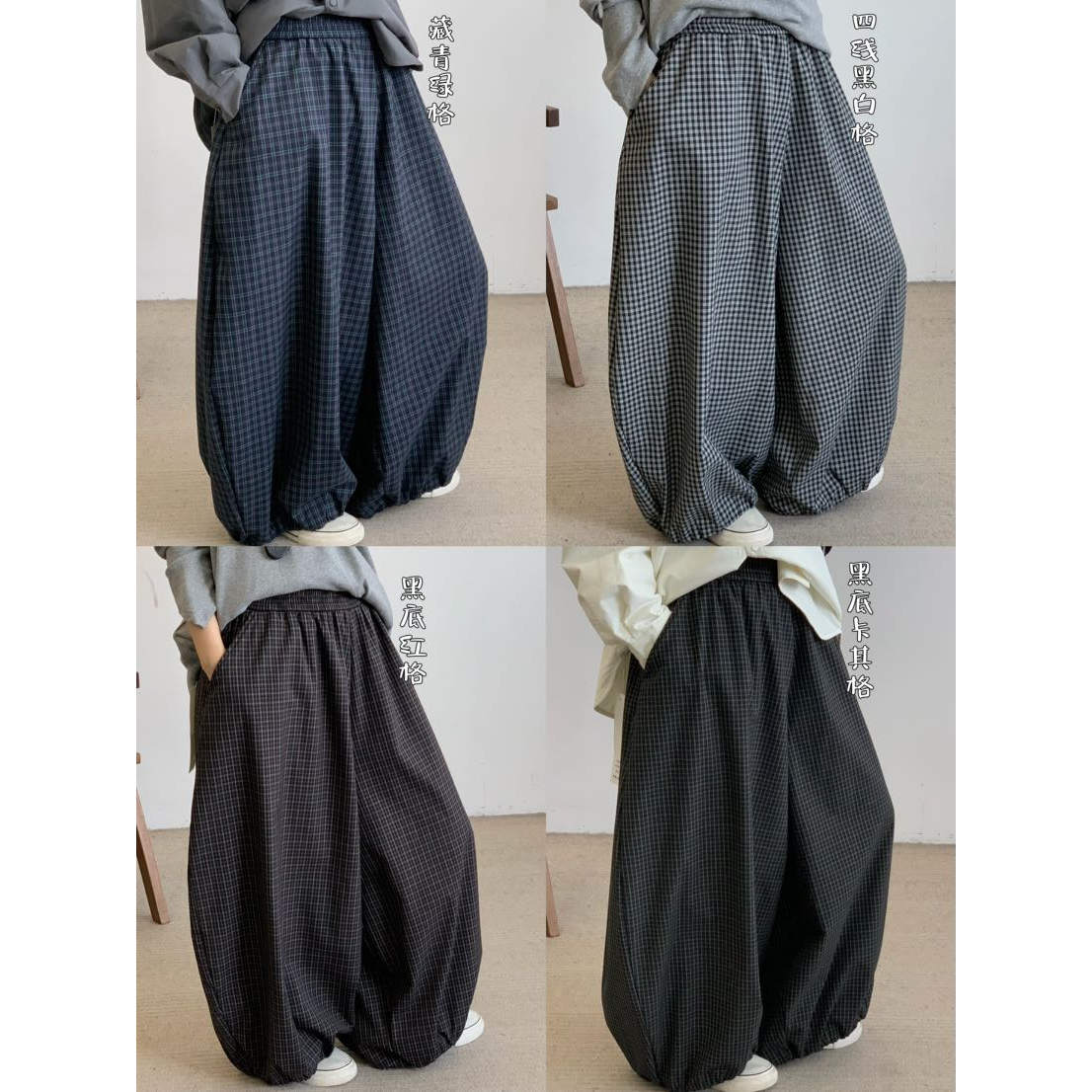 休闲摇粒绒格子加厚阔腿灯笼长裤