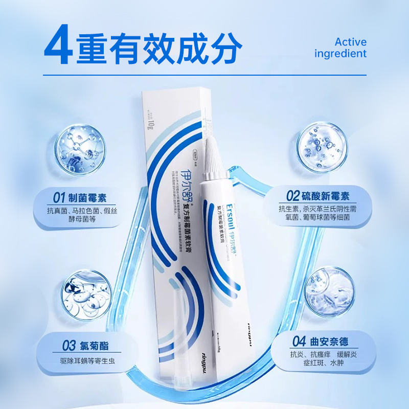 瑞普伊尔舒复方制霉菌素软膏猫咪耳螨用药宠物马拉色菌耳药伊耳舒