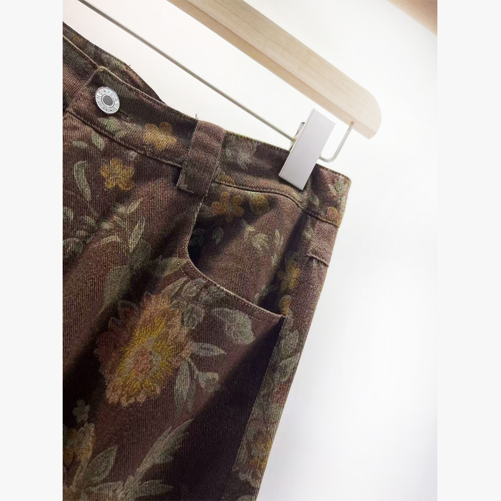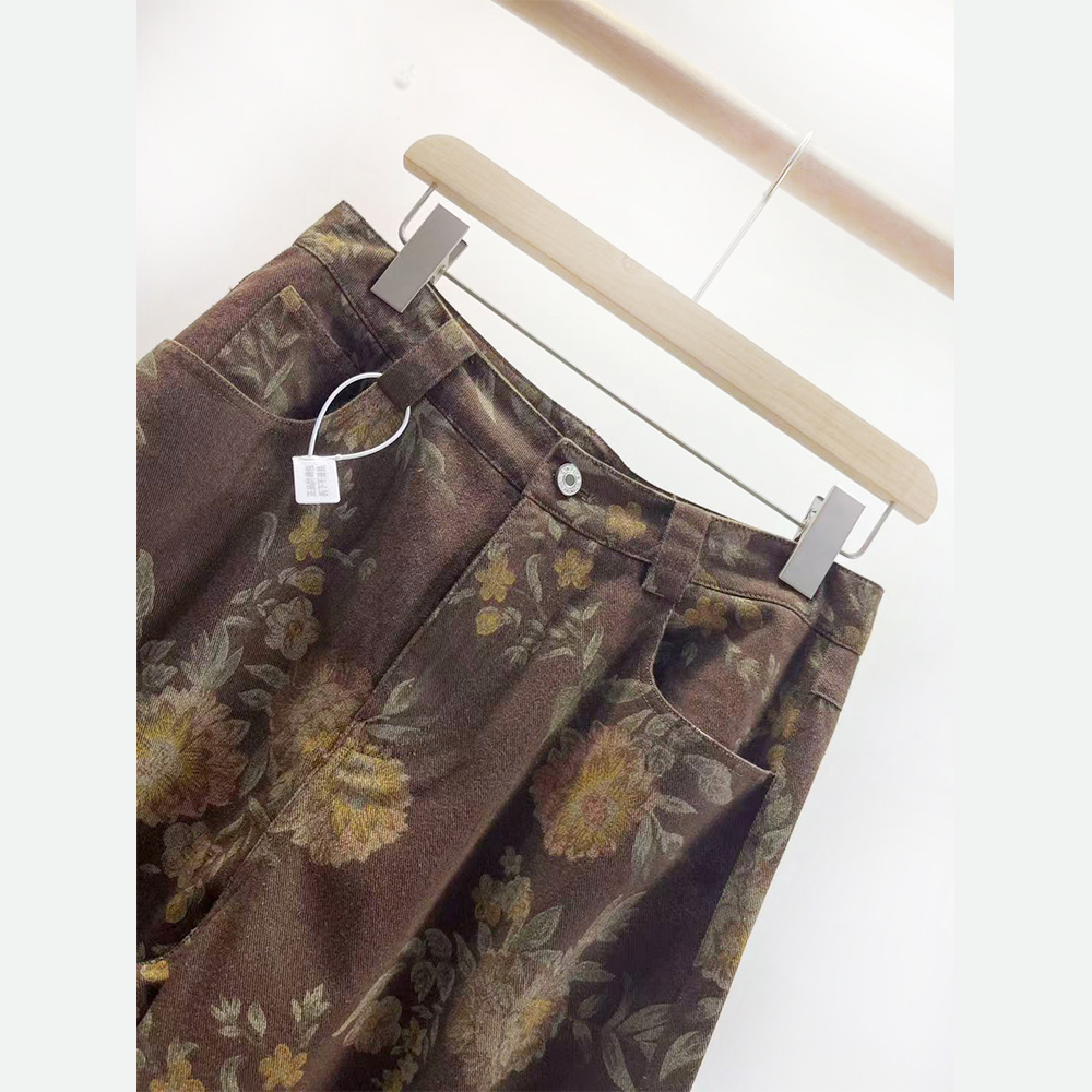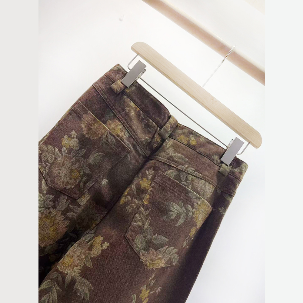 PUTIAN朴恬百搭高腰印花阔腿裤2025冬装新款韩版时尚牛仔裤潮1192