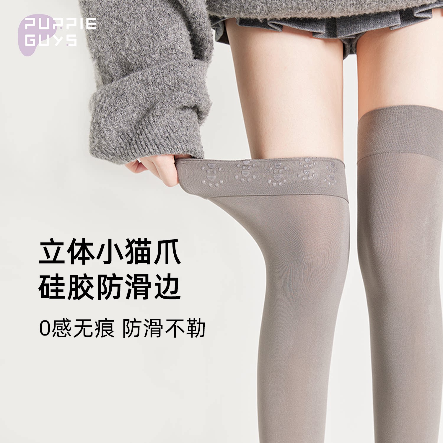 灰色防滑猫爪长筒过膝袜