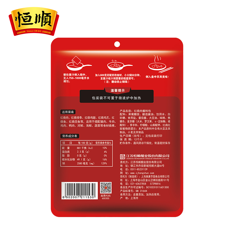 恒顺红烧肉调料包215g*5袋商用鱼排骨酱料料酱汁大棒骨专用调味包