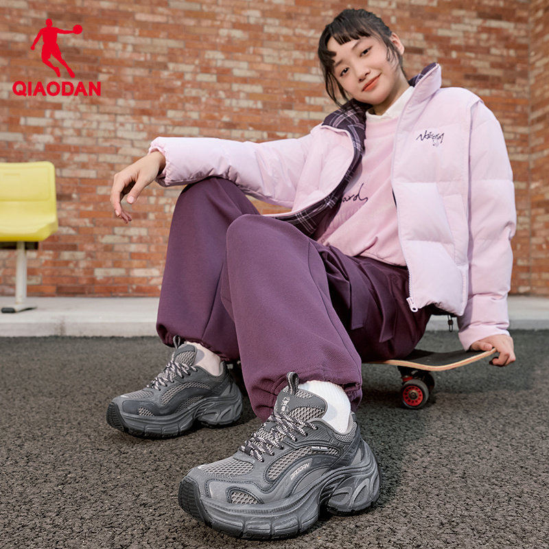 天际乔丹厚底增高网面老爹鞋女鞋2026春季新款运动鞋灰黑色休闲鞋