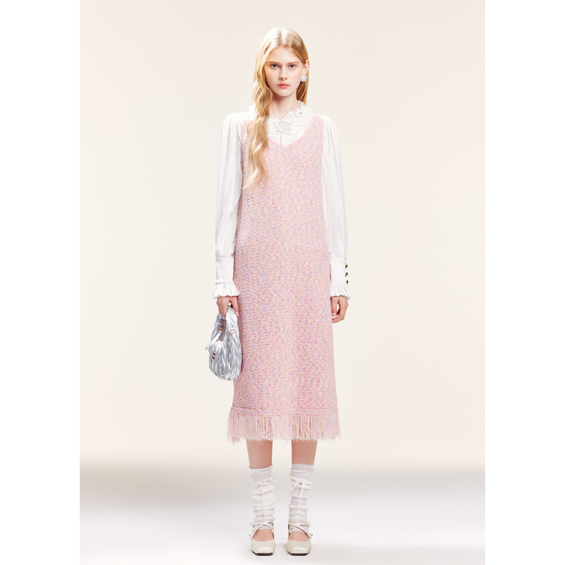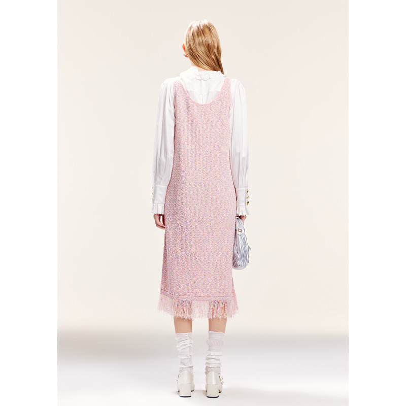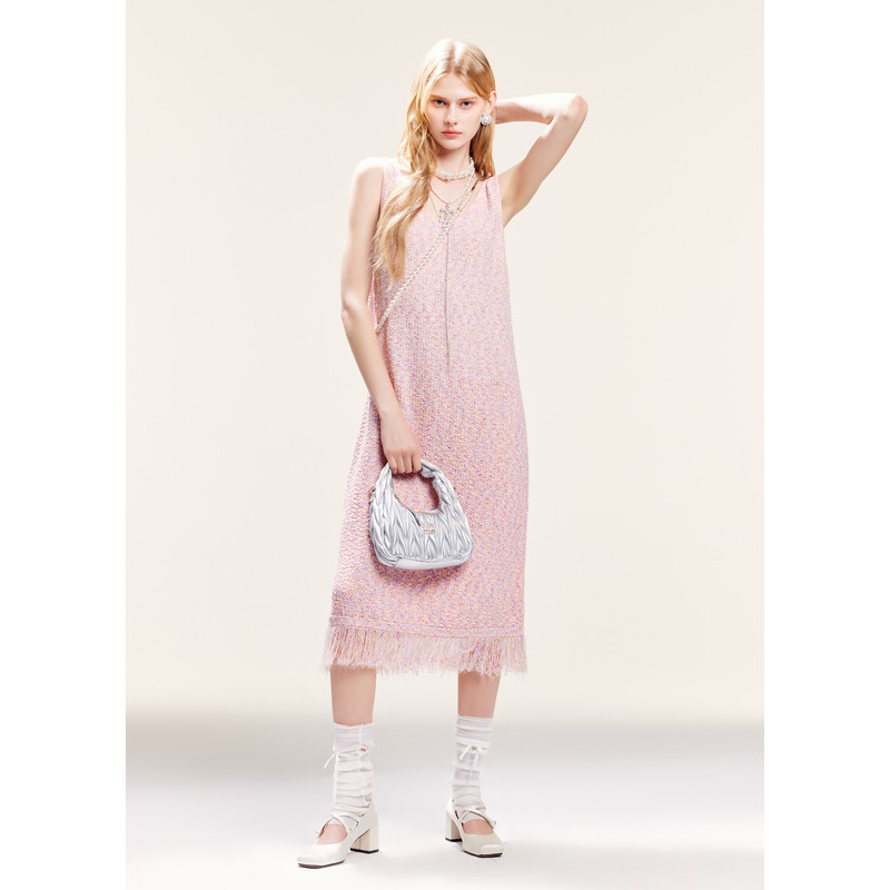 MISSCOCOON彩虹纱拉毛流苏背心裙少女粉细闪连衣裙春款