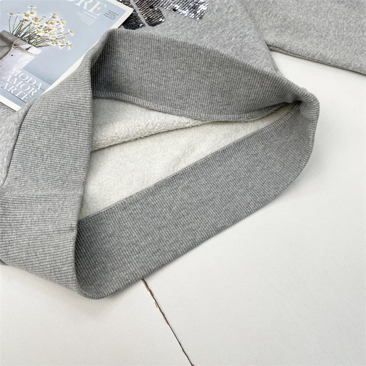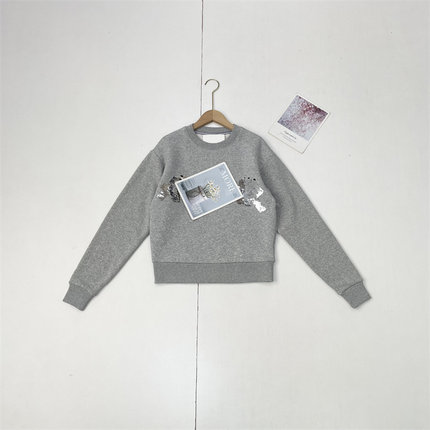 X3外单95美刀25冬新款女士加绒圆领套头亮片字母印花简约百搭卫衣