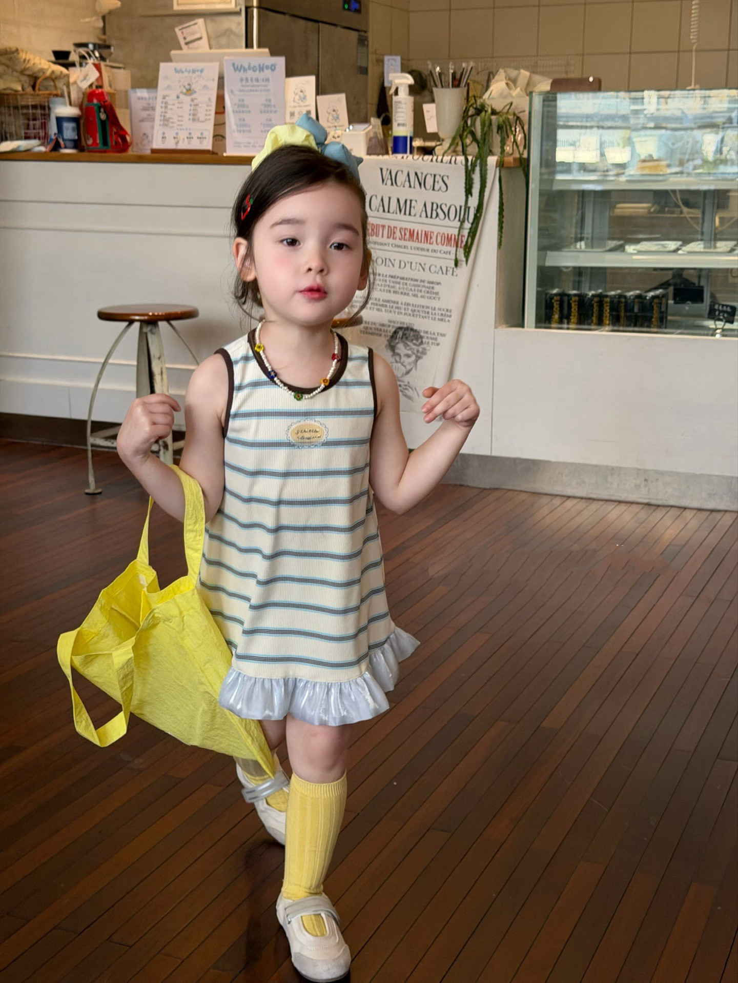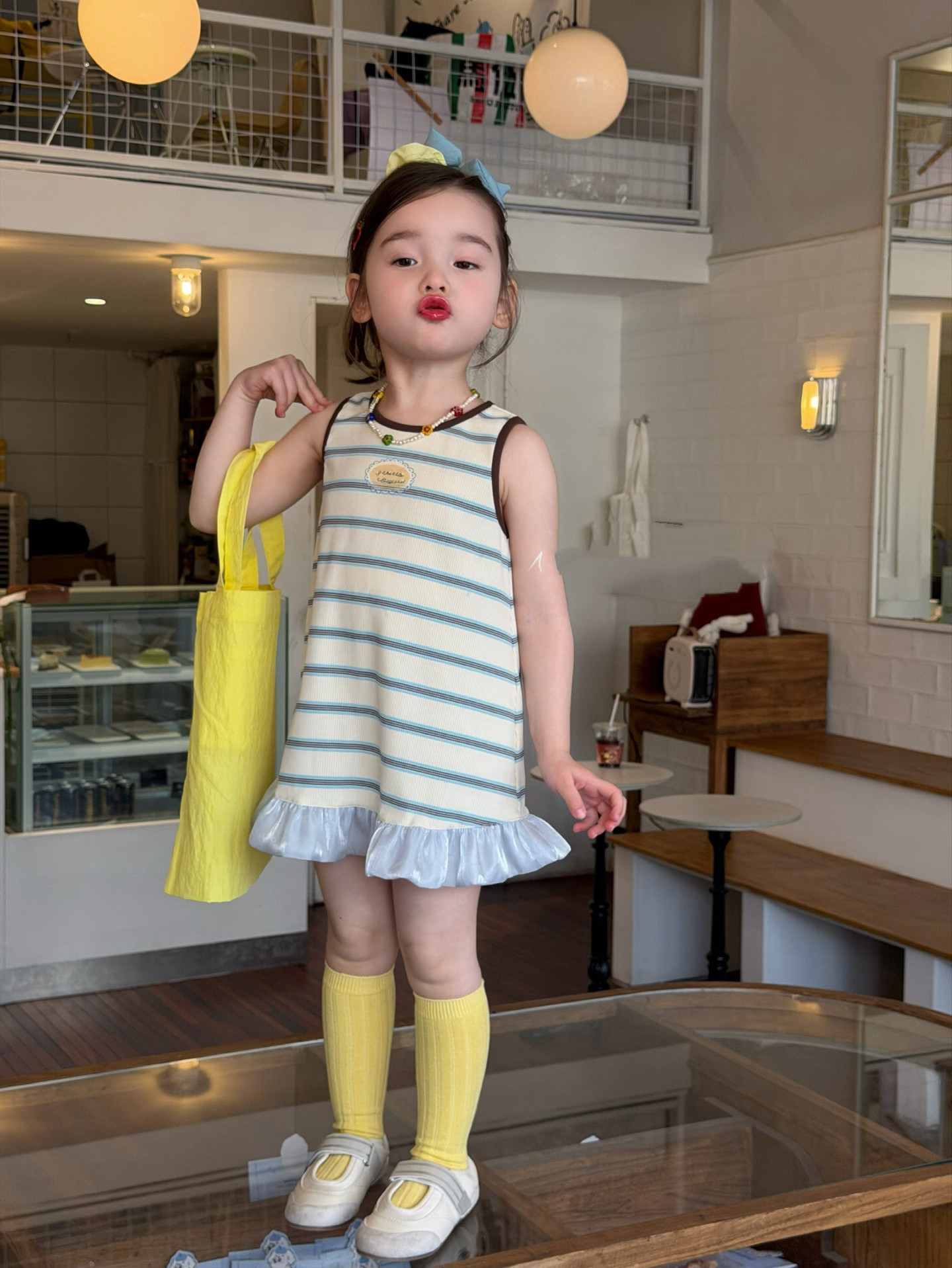 女童背心裙连衣裙夏装2026女孩花边纯棉t棉布裙条纹无袖T恤连衣裙