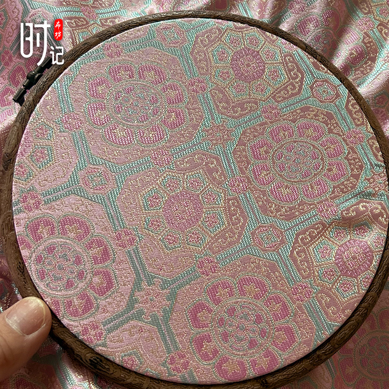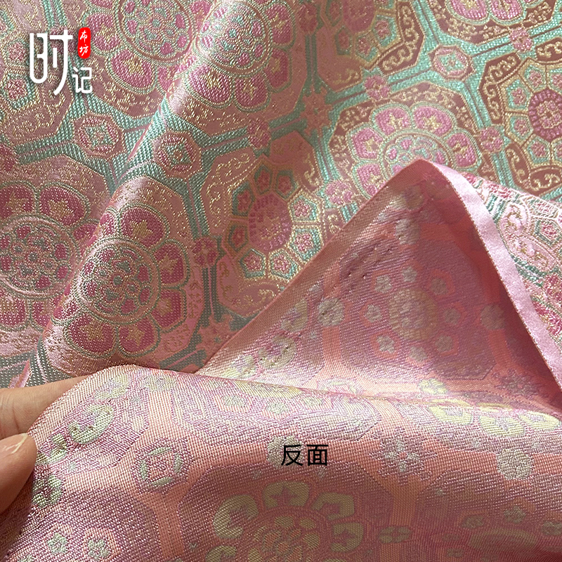 新粉色相纹织锦缎布料古装汉服旗袍绸缎坐垫古风