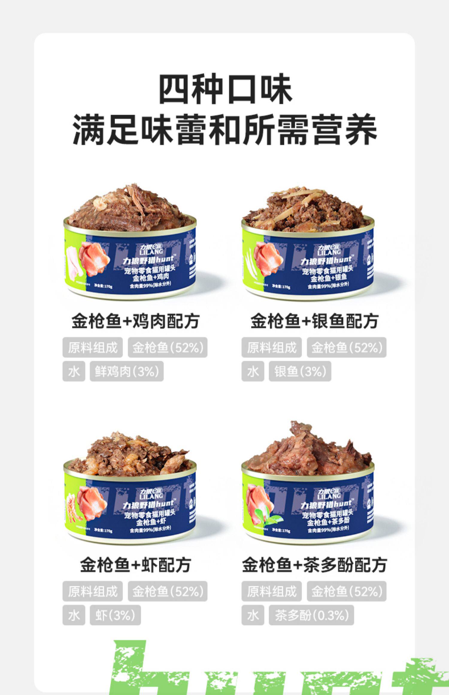 力狼猫罐头猫咪零食补充营养高肉金枪鱼鸡肉湿粮零食大罐170g12罐