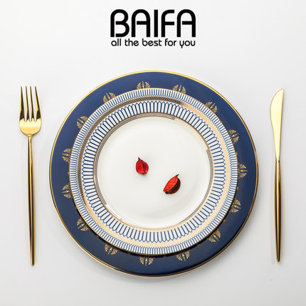 盘子菜盘家用轻奢骨瓷牛排西餐餐盘欧式陶瓷碗碟餐具套装西式碟子