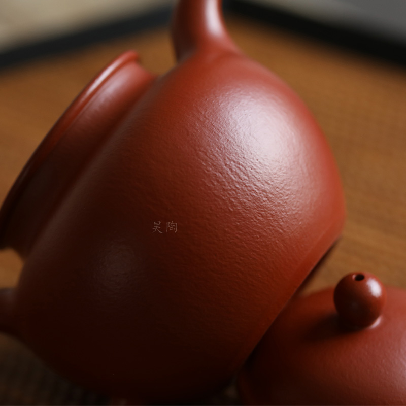 昊陶 掇球 小煤窑朱泥 全手工 内壁刻字 宜兴原矿紫砂茶壶