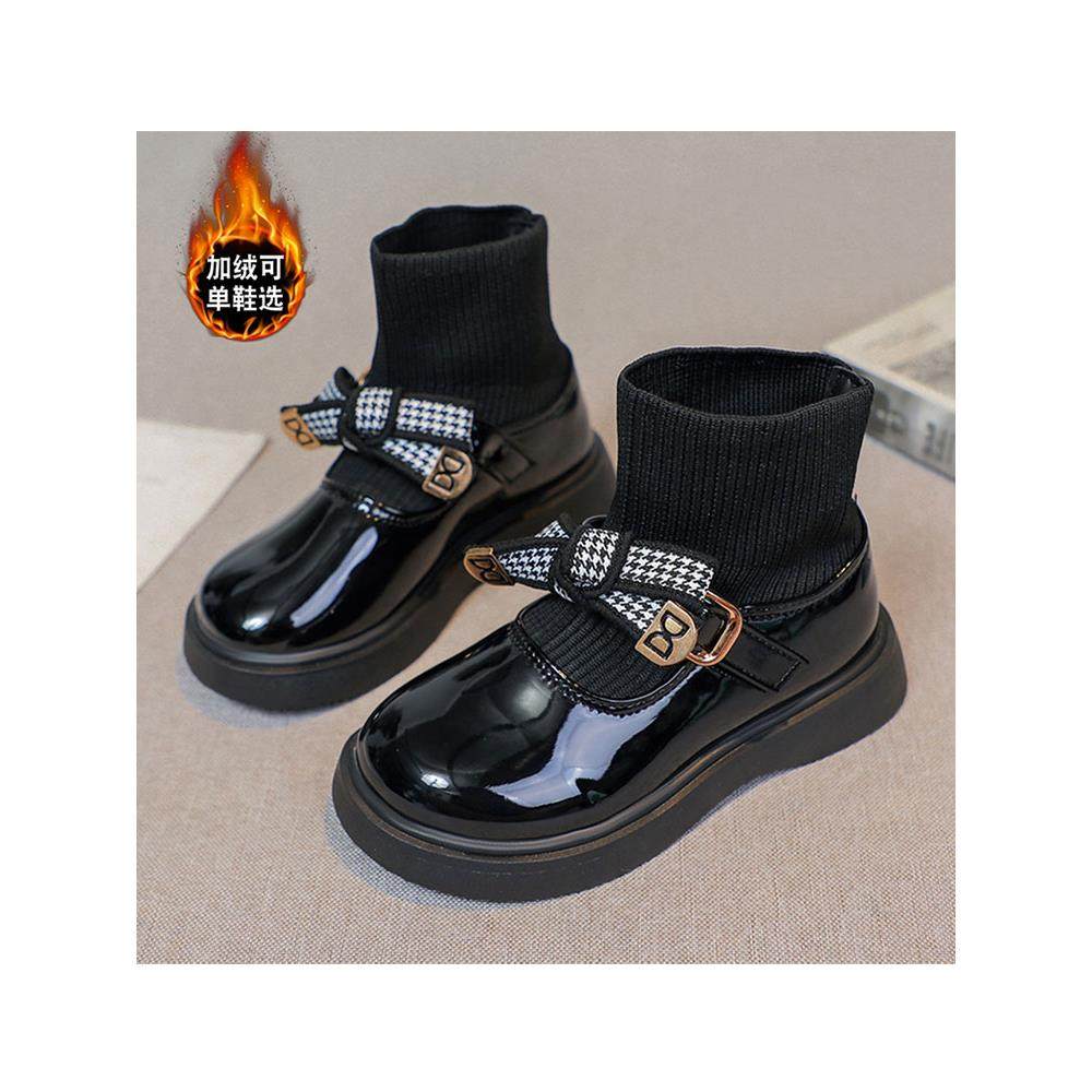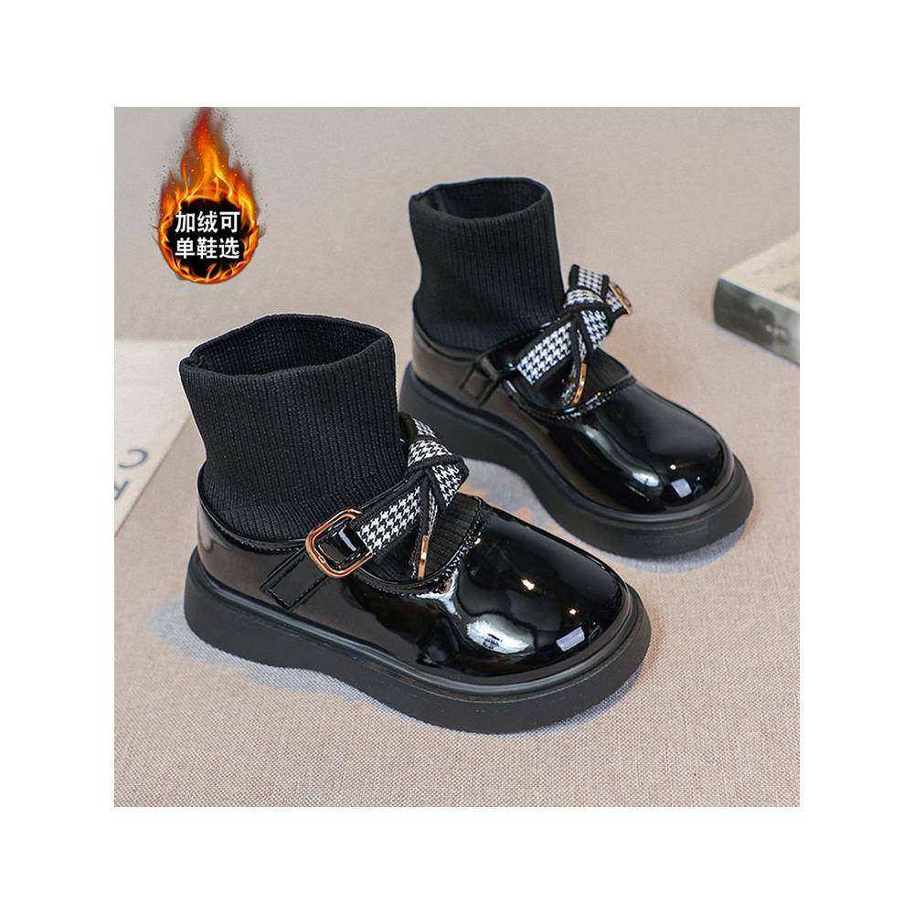 KFT脚王女童黑色小皮鞋秋冬季2025新款儿童加绒保暖棉鞋女孩时尚