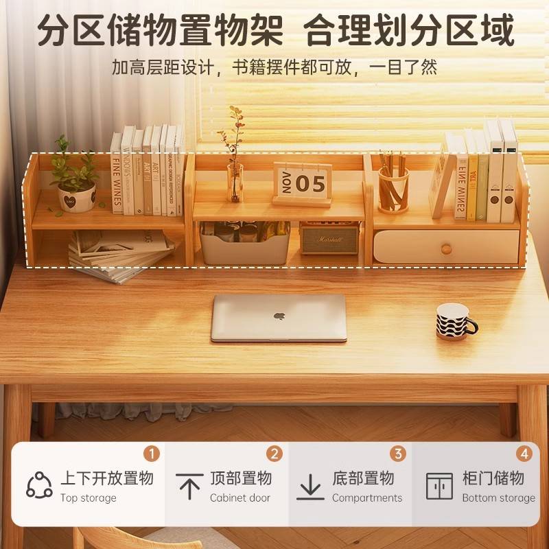书桌书架一体桌学生家用学习写字桌卧室台式电脑桌实木腿办公桌子