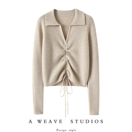 即穿即美!2023新款100%纯羊绒衫V领皱褶羊绒毛衣针织衫上衣女