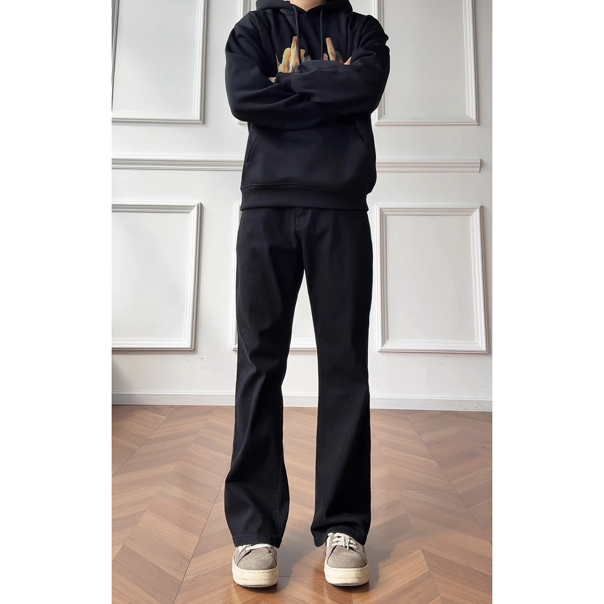 春秋柳叶弯刀牛仔裤男款美式高街显瘦微喇裤子中腰提裆修身直筒裤