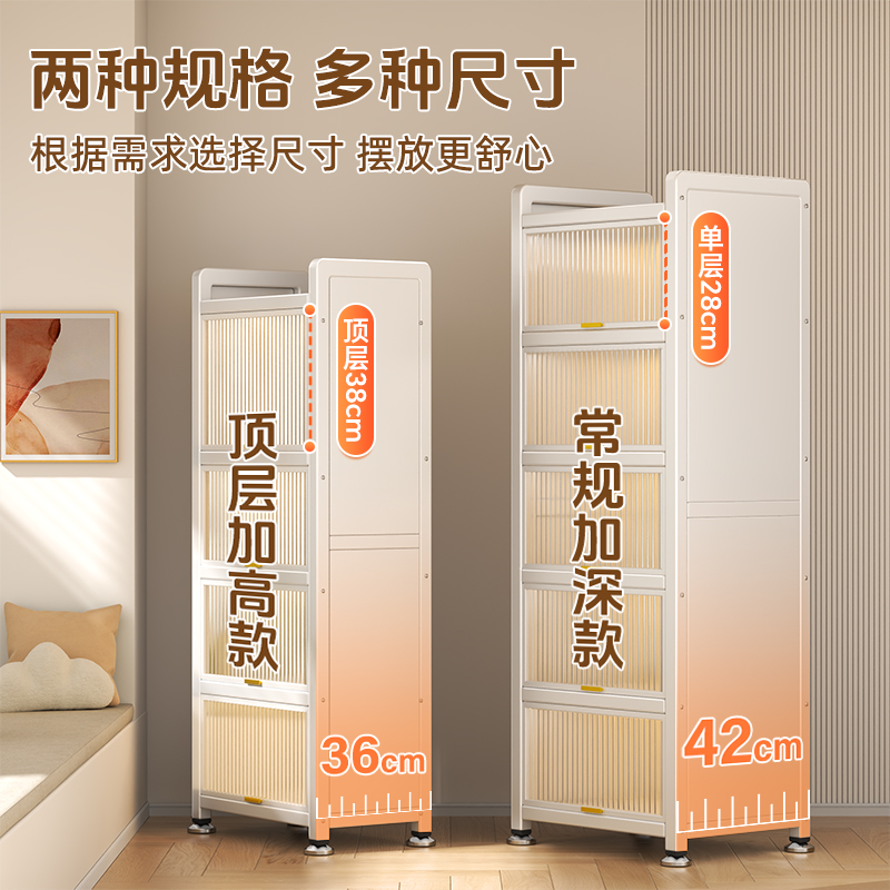 钢制家用翻门书柜多层落地一体夹缝置物柜书房卧室防尘铁艺收纳柜