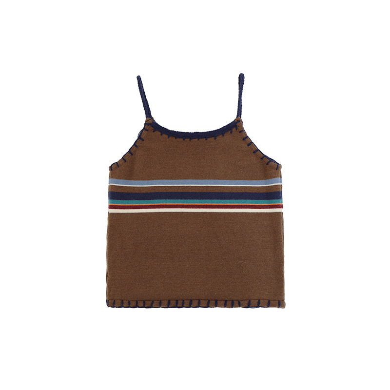 小小大星球撞色针织毛衣吊带