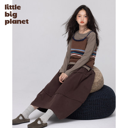 小小大星球童装 小复古描线风针织撞色马甲 软糯舒适女童背心毛衣