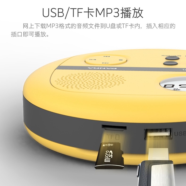 熊猫F-01 CD复读机学生英语学习播放机便携式随身听光盘U盘插卡