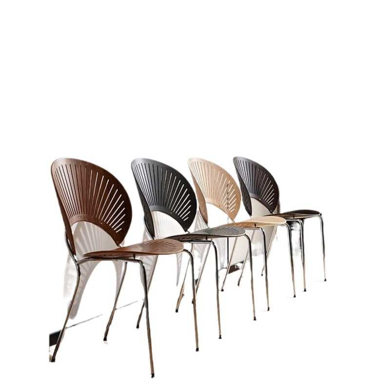 北欧网红实木贝壳中古椅子餐椅太阳家用靠背椅法式简约复古餐桌椅
