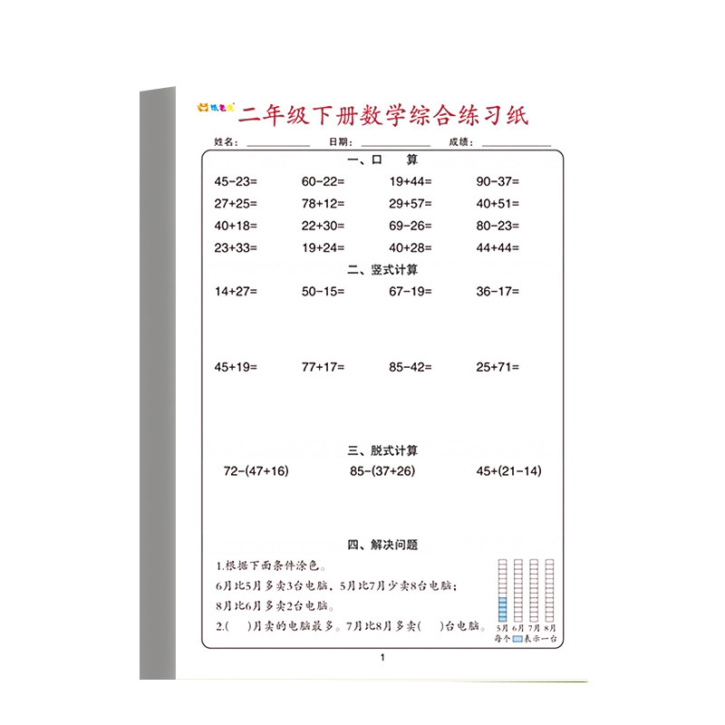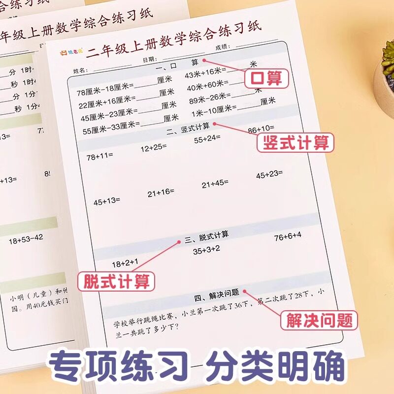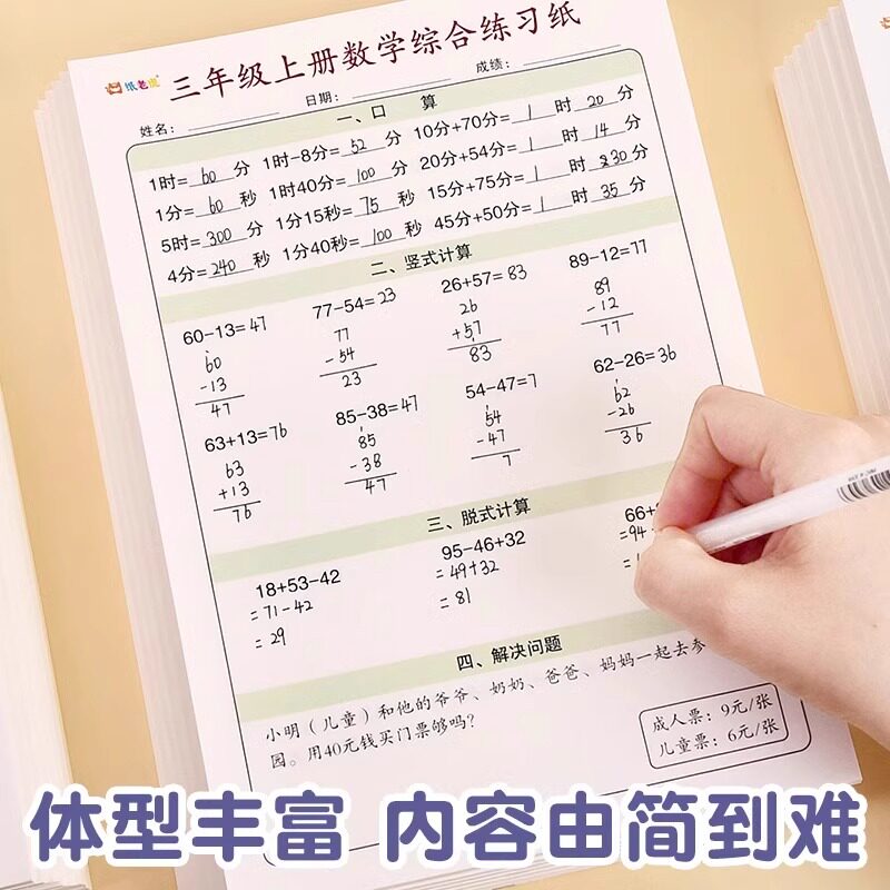 数学综合练习纸一二三四年级数学思维人教版小学睡前计算同步口算笔算应用计算能力培养训练题每日打卡天天练