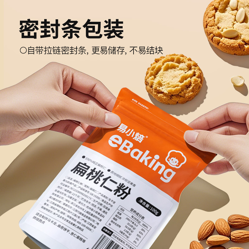 易小焙纯扁桃仁粉家用烘焙杏仁蛋糕曲奇杏仁酥专用无麸质原料100g