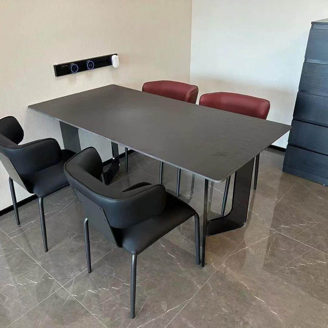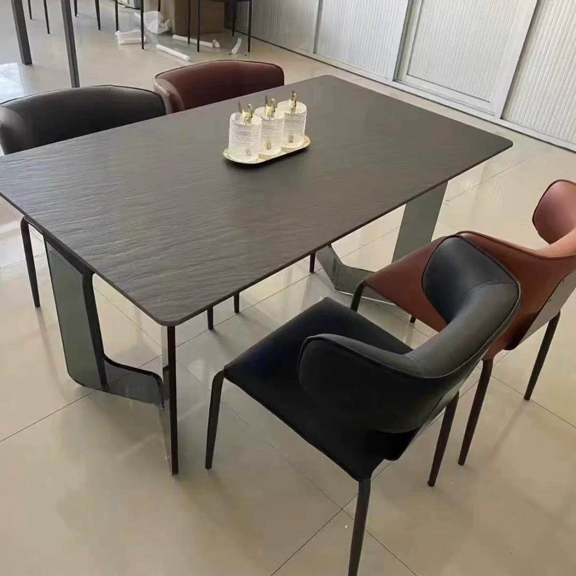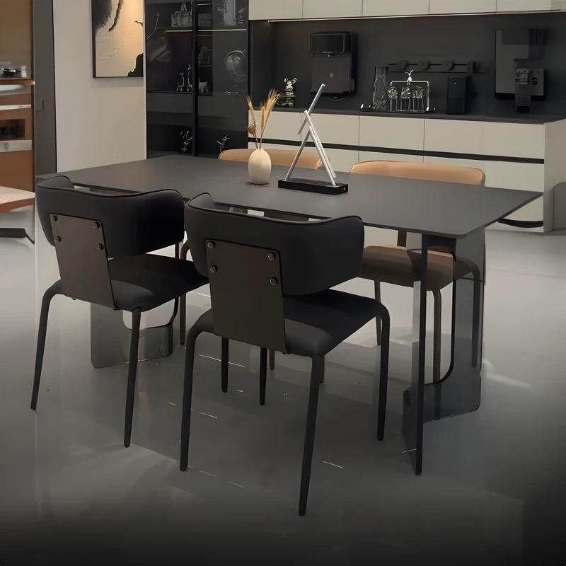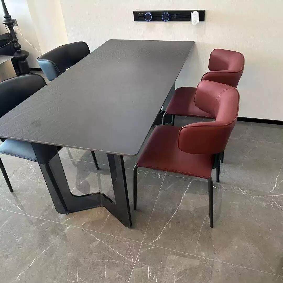 意式极简风压克力陨石黑岩板悬浮餐桌椅家用高级长方形火烧石餐桌